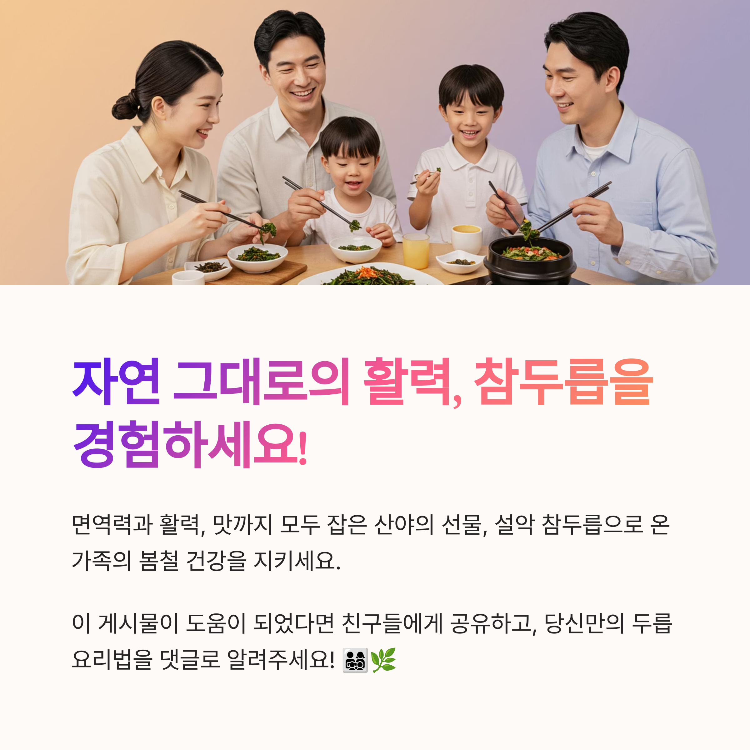 참두릅에 대한 여러분의 추억이나 레시피, 혹은 건강을 위한 다양한 노하우를 댓글로 공유해 주세요. 여러분의 이야기가 다른 독자들에게 큰 도움이 됩니다!
