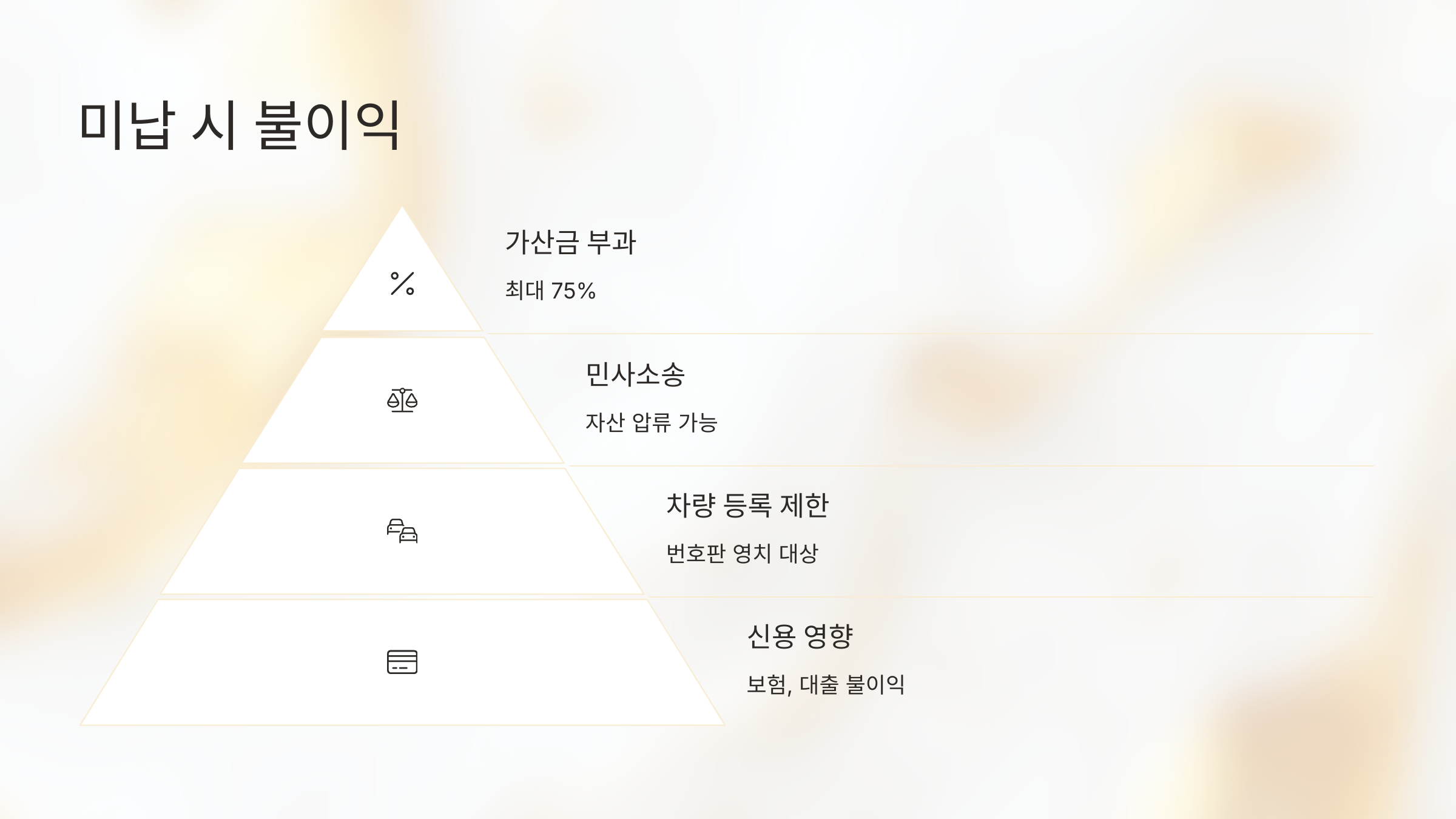 미납을 무시한 상태가 지속되면 다음과 같은 법적 불이익이 따릅니다