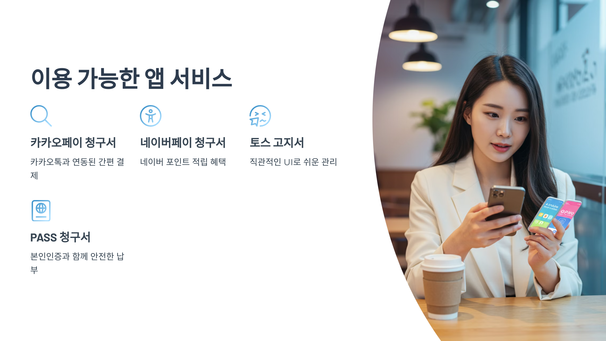 주요 앱으로는 카카오페이 청구서, 네이버 페이 청구서, 토스 고지서, PASS 청구서 등이 있으며,