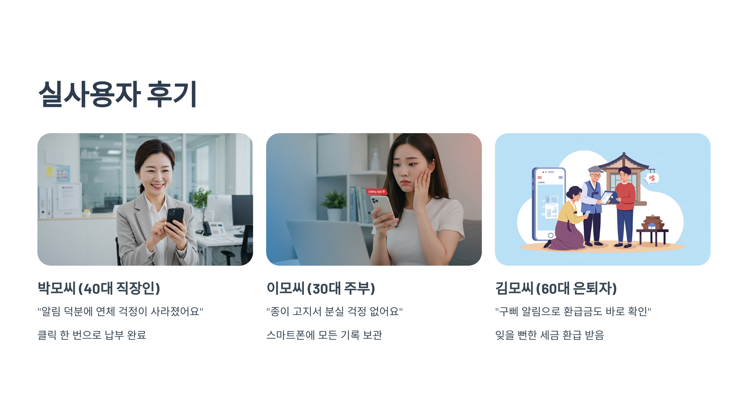 알림만 보고 클릭 한 번으로 납부가 끝나서 훨씬 편해졌다”고 말했습니다.