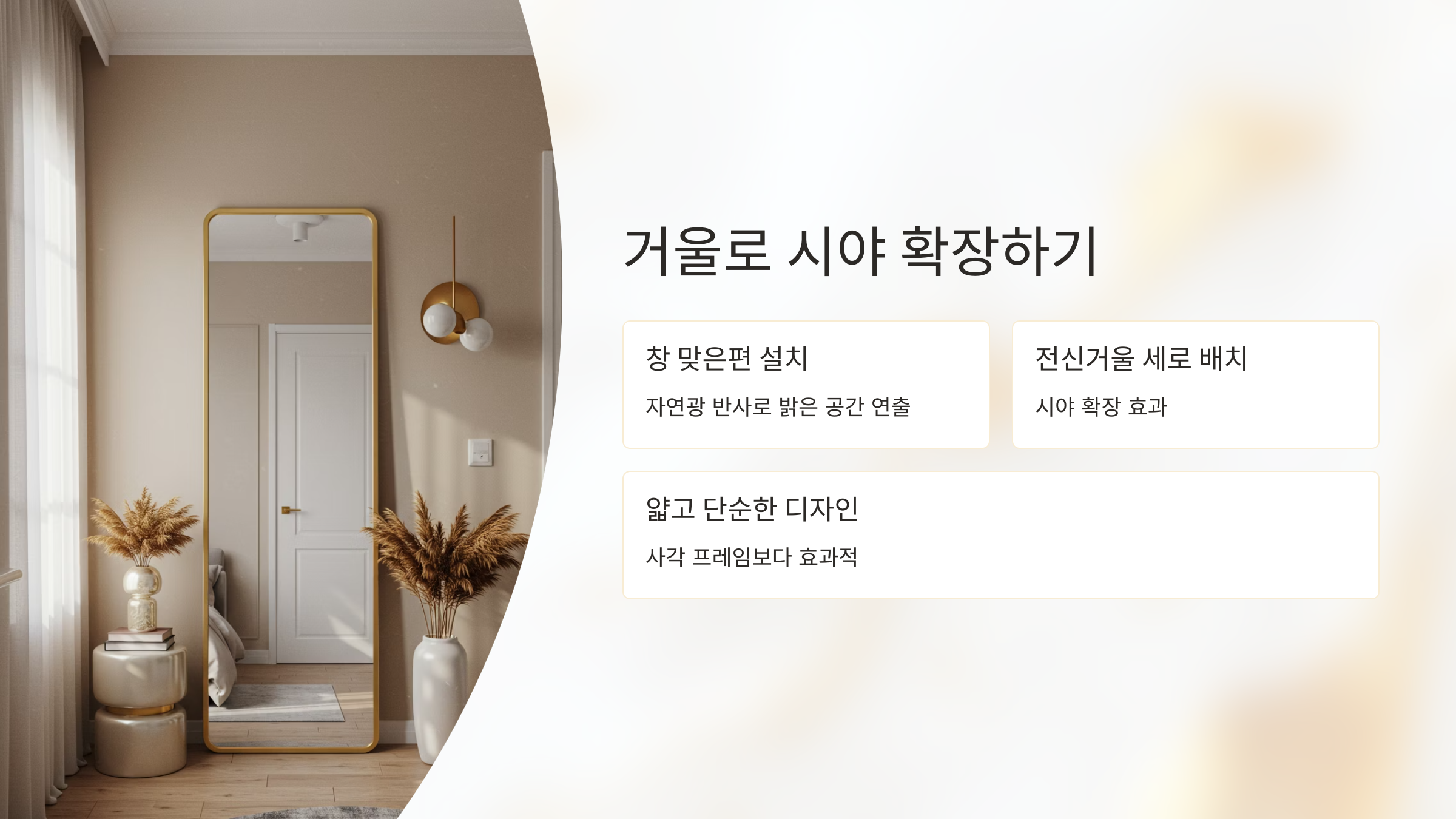 "거울 하나만 잘 둬도 공간이 한쪽 벽 더 생긴 듯한 효과"