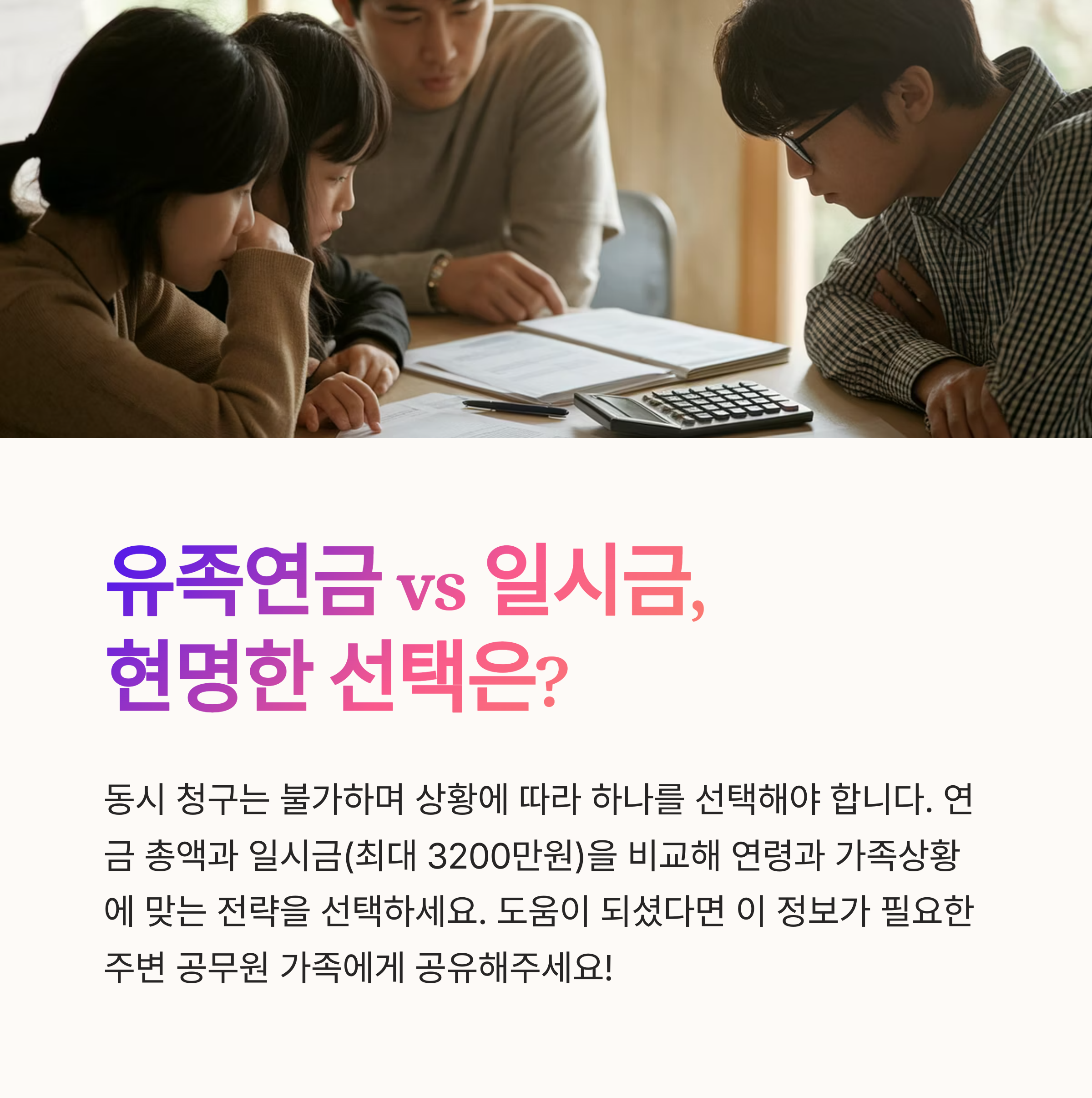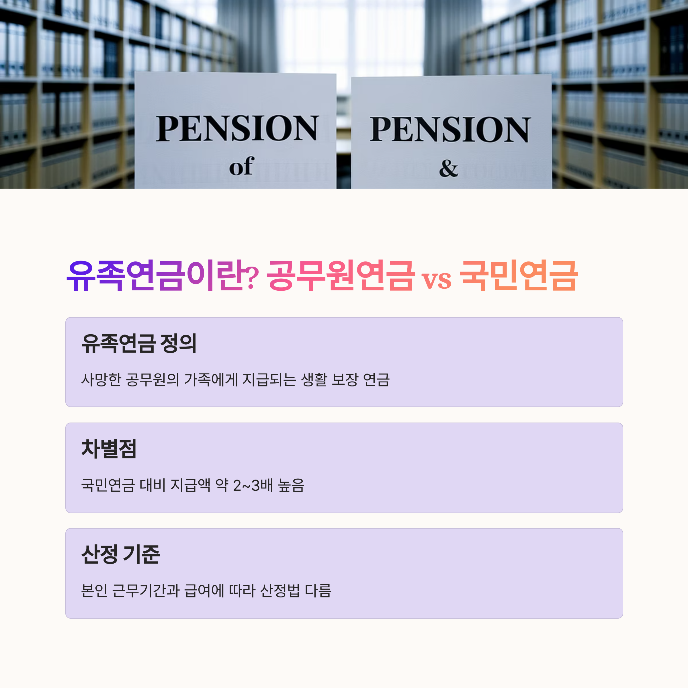 유족연금 외에도 '일시금' 형태의 퇴직금이 별도로 남겨진 경우가 많습니다.