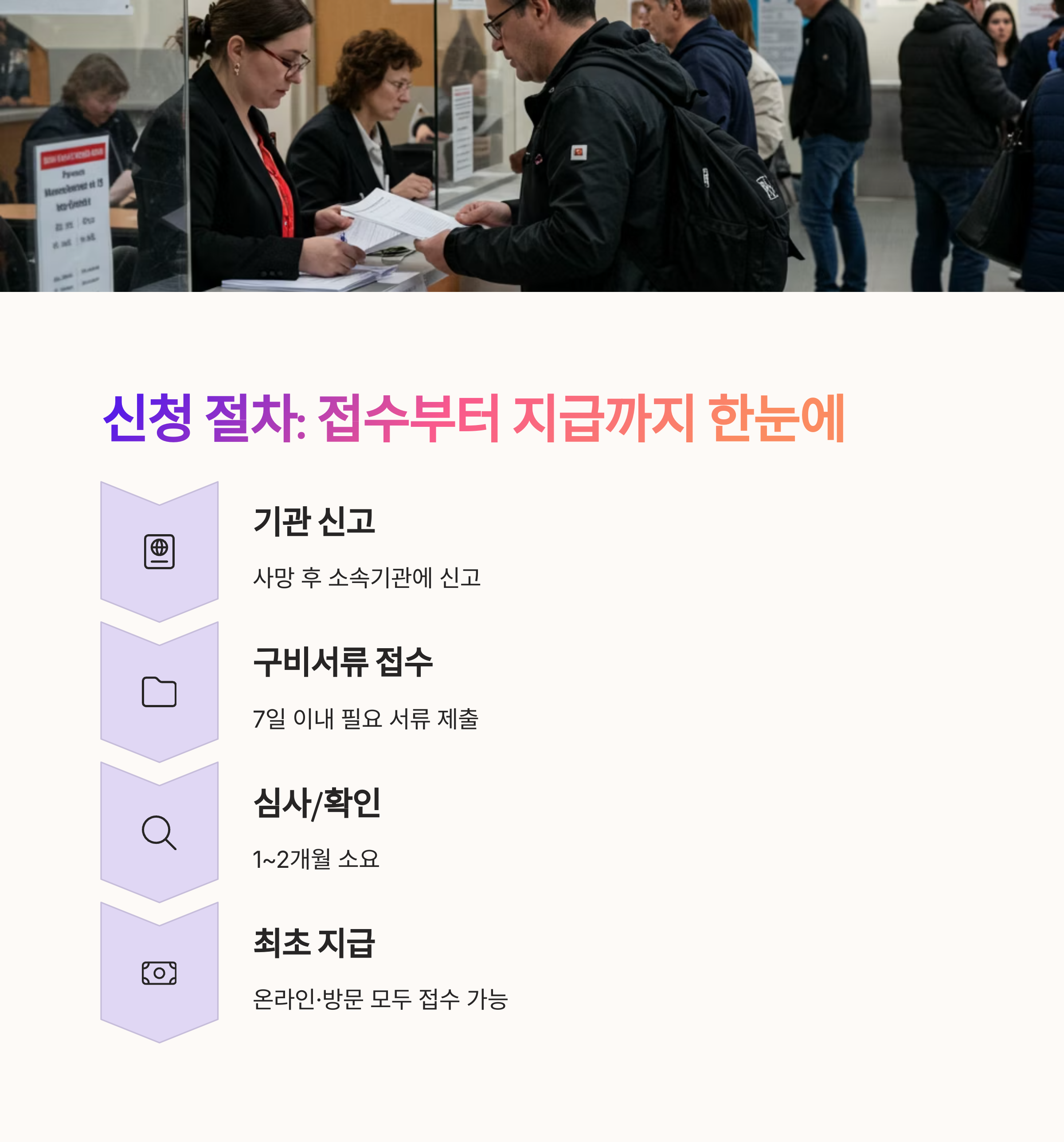 - 1개월 내 심사 완료 후 첫 연금 지급이 이루어집니다.