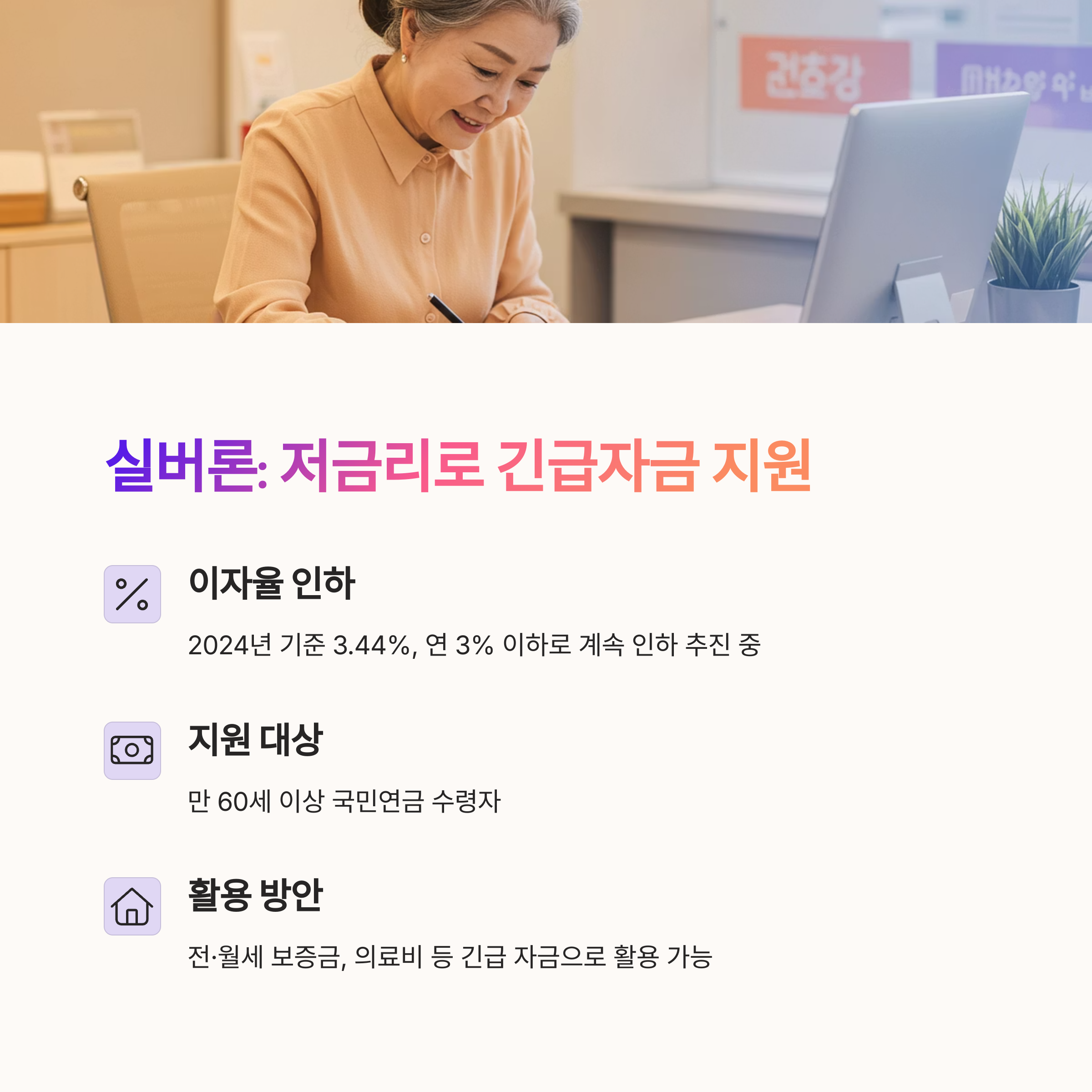 | 실버론 이자율 인하 | 연 3% 이하로 낮아져 부담 완화 효과 |