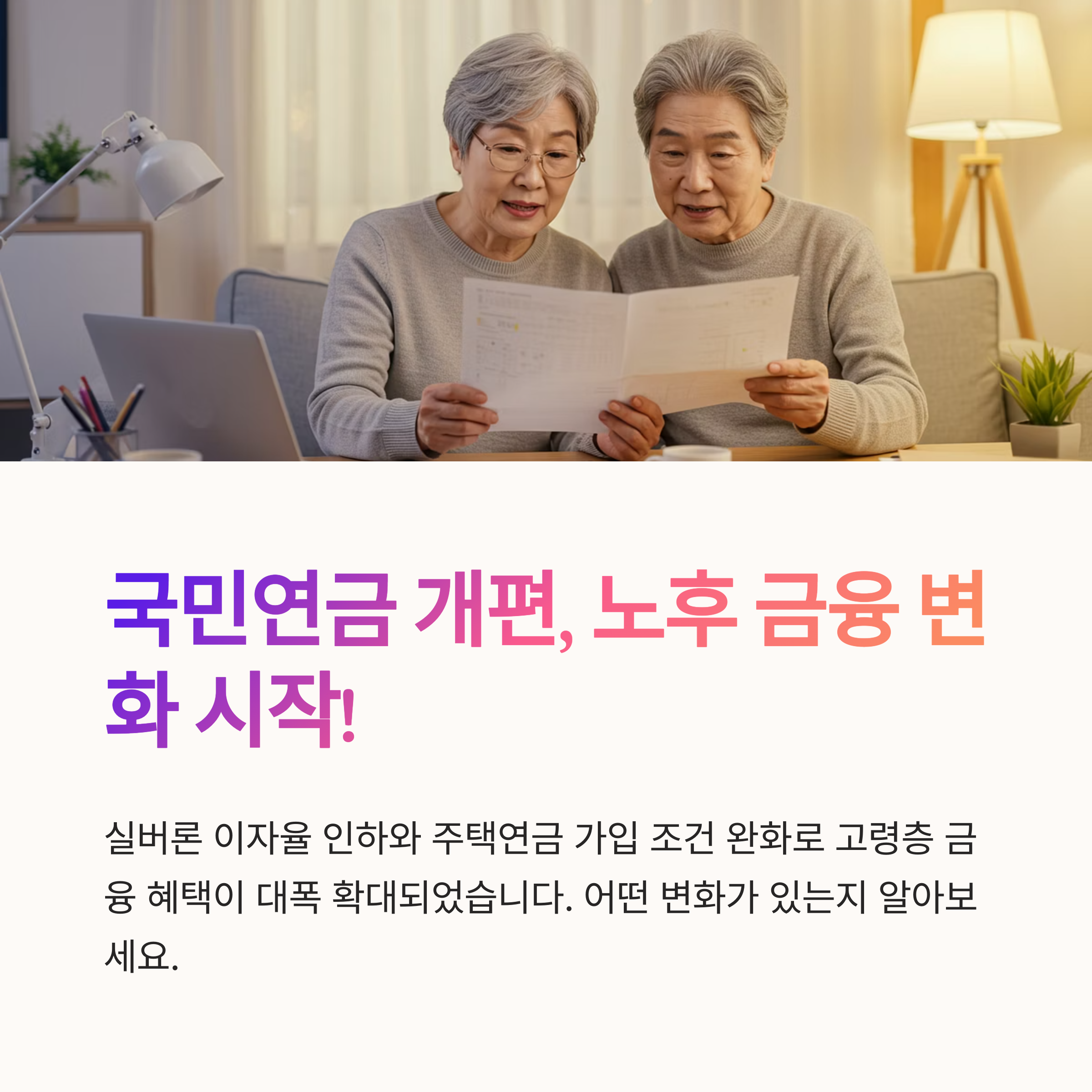 최근 국민연금공단이 발표한 대출 제도의 변화로, 특히 실버론과 주택연금의 이자율 인하가 많은 시니어층의 관심을 끌고 있습니다. 이번 개편은 고령층의 금융 부담을 줄이고 더 안정적인 노후를 설계할 수 있도록 돕기 위한 목적을 담고 있는데요. 이러한 변화는 단순한 숫자 조정 그 이상으로, 삶의 질 개선에도 깊은 영향을 줄 수 있습니다. 특히 기존에 실버론 이용을 고민하셨던 분들에게는 좋은 기회가 될 수 있으며, 주택연금 제도 또한 완화되면서 보다 폭넓은 접근이 가능해졌습니다. 오늘은 이 두 제도의 핵심 변화와 함께, 어떻게 활용하면 좋을지에 대해 자세히 살펴보겠습니다. 고령자의 입장에서 실제 체감할 수 있는 장점은 무엇이며, 실질적으로 어떤 준비가 필요한지도 함께 안내해드릴게요.