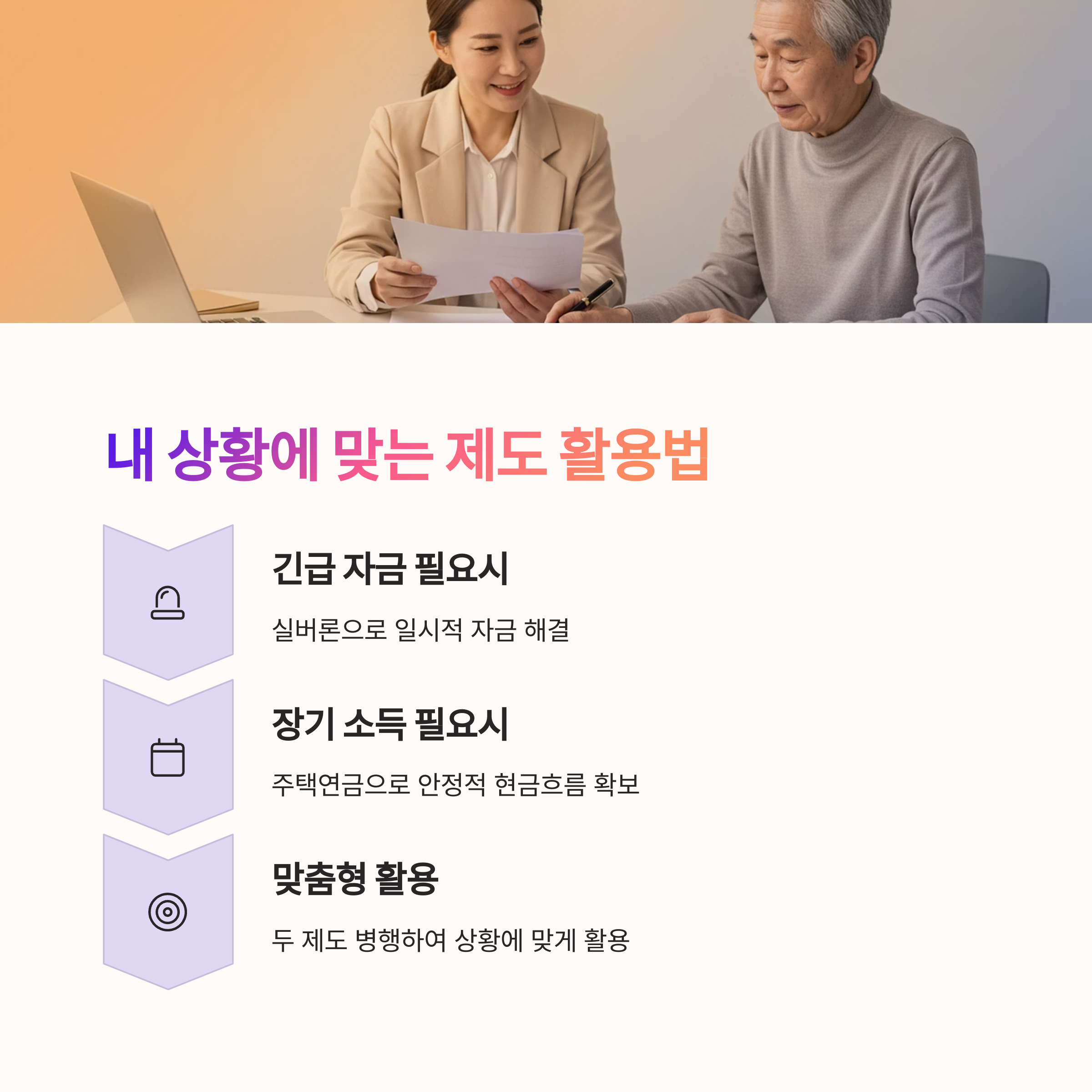 실버론과 주택연금 모두 노후생활의 안정성을 높여주는 중요한 제도입니다. 다만 본인의 상황에 맞는 조건을 잘 따져보고 신중하게 선택하는 것이 중요합니다. 주택연금은 주거지를 유지하며 현금 흐름을 확보할 수 있고, 실버론은 긴급 자금이 필요할 때 활용할 수 있는 수단입니다. 두 제도 모두 최근 변화로 인해 접근성이 크게 개선되었으므로, 자신의 연금 수급 내역, 자산 상황, 가족 구조 등을 고려해 실질적인 도움이 될 수 있는 방향으로 활용해보시기 바랍니다.