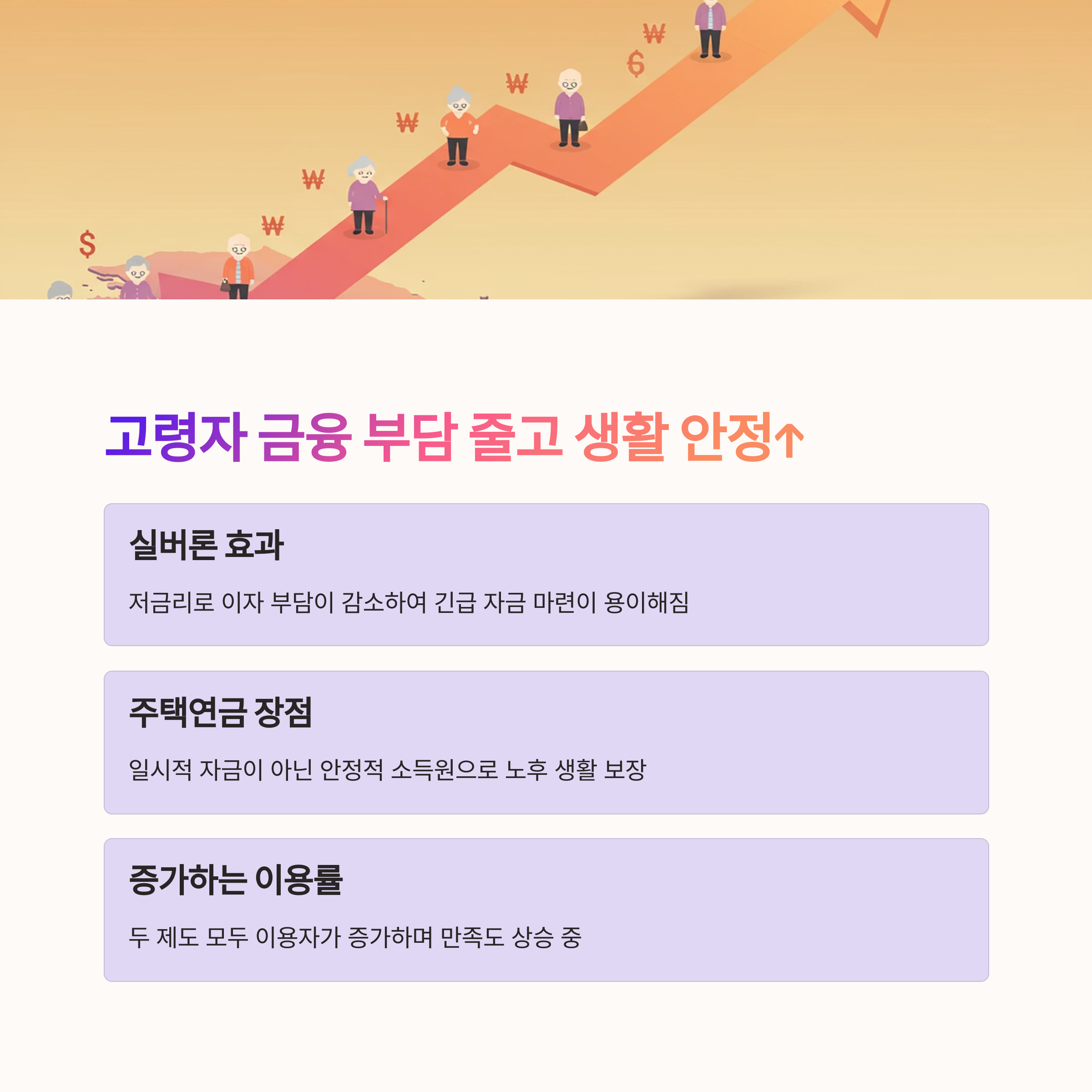 | 이자율 인하로 부담 감소 | 가입 조건 완화 및 확대 | 고령층 대상 제도 혁신 추진 |