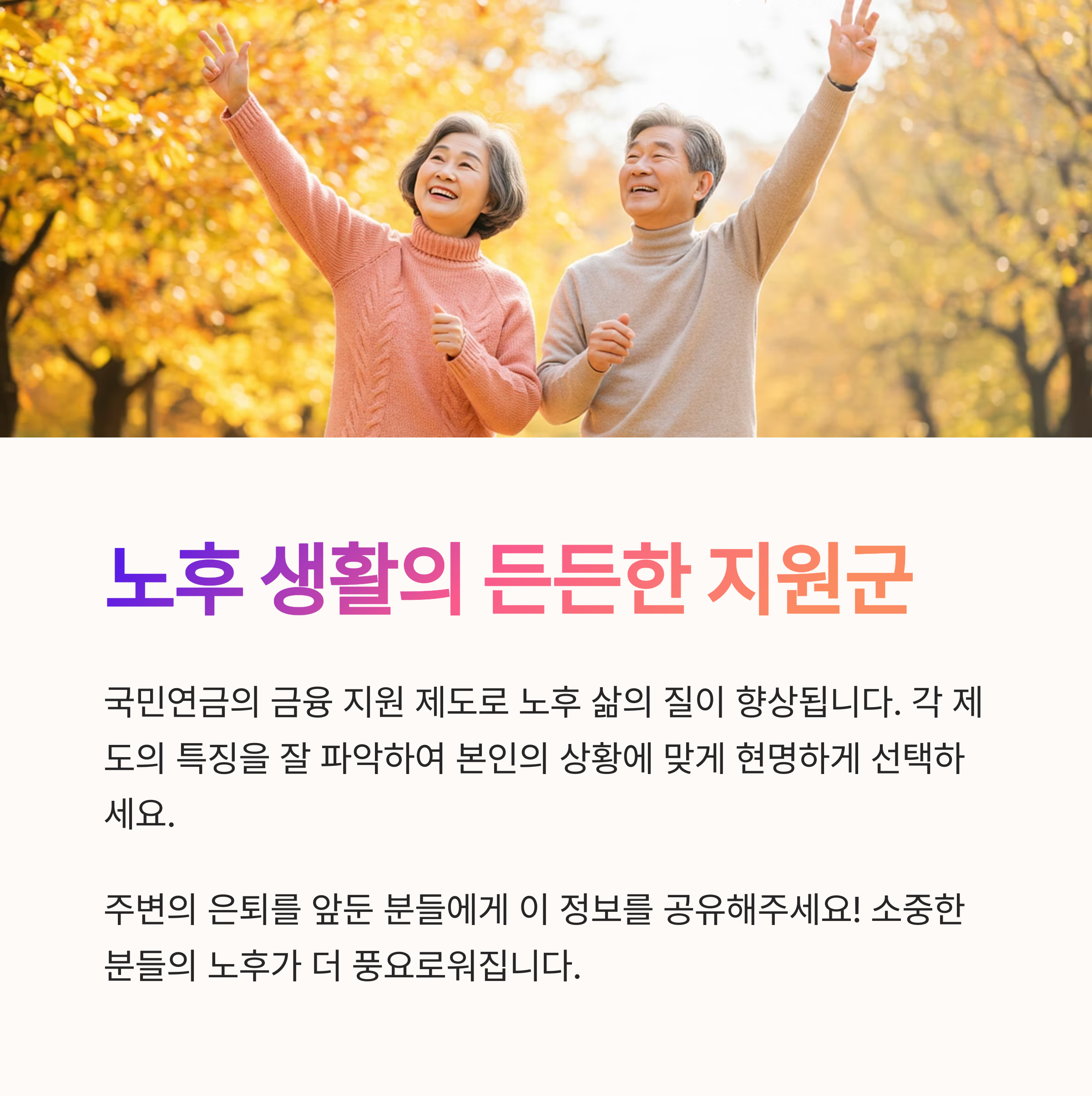 2025년부터 개편된 국민연금 관련 제도는 실버 세대를 위한 더 나은 노후를 만들어가기 위한 중요한 발판입니다. 실버론의 이자율 인하는 급전이 필요한 분들에게 부담을 덜어주는 역할을 하며, 주택연금의 완화된 조건은 보다 많은 이들에게 제도를 열어줍니다. 다만, 이러한 제도를 충분히 이해하고 현명하게 활용하는 것이 무엇보다 중요합니다. 본인의 자산 상태, 가족 구성, 장기 계획 등을 꼼꼼히 고려해 스스로에게 가장 적합한 제도를 선택하는 것이 성공적인 노후의 핵심이라 할 수 있습니다.