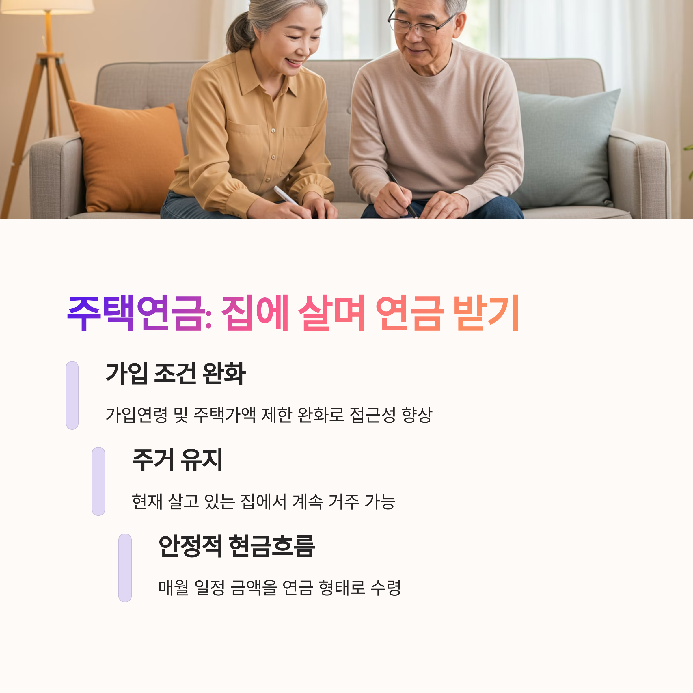 | 주택연금 조건 완화 | 가입 연령 및 소득 기준 완화되어 접근성 향상 |