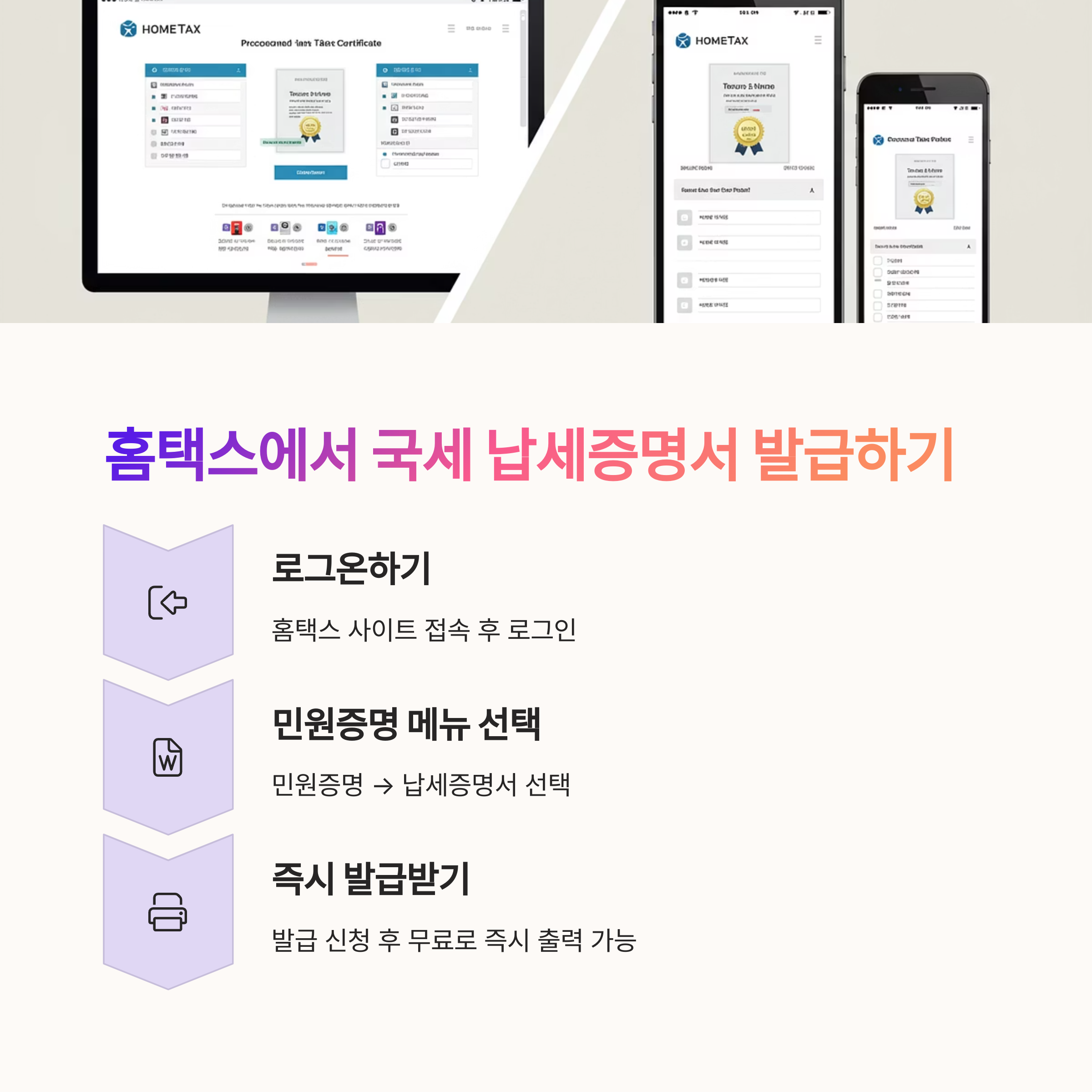 "홈택스는 국세청 공식 시스템으로 국세 증명서 발급의 정석입니다"