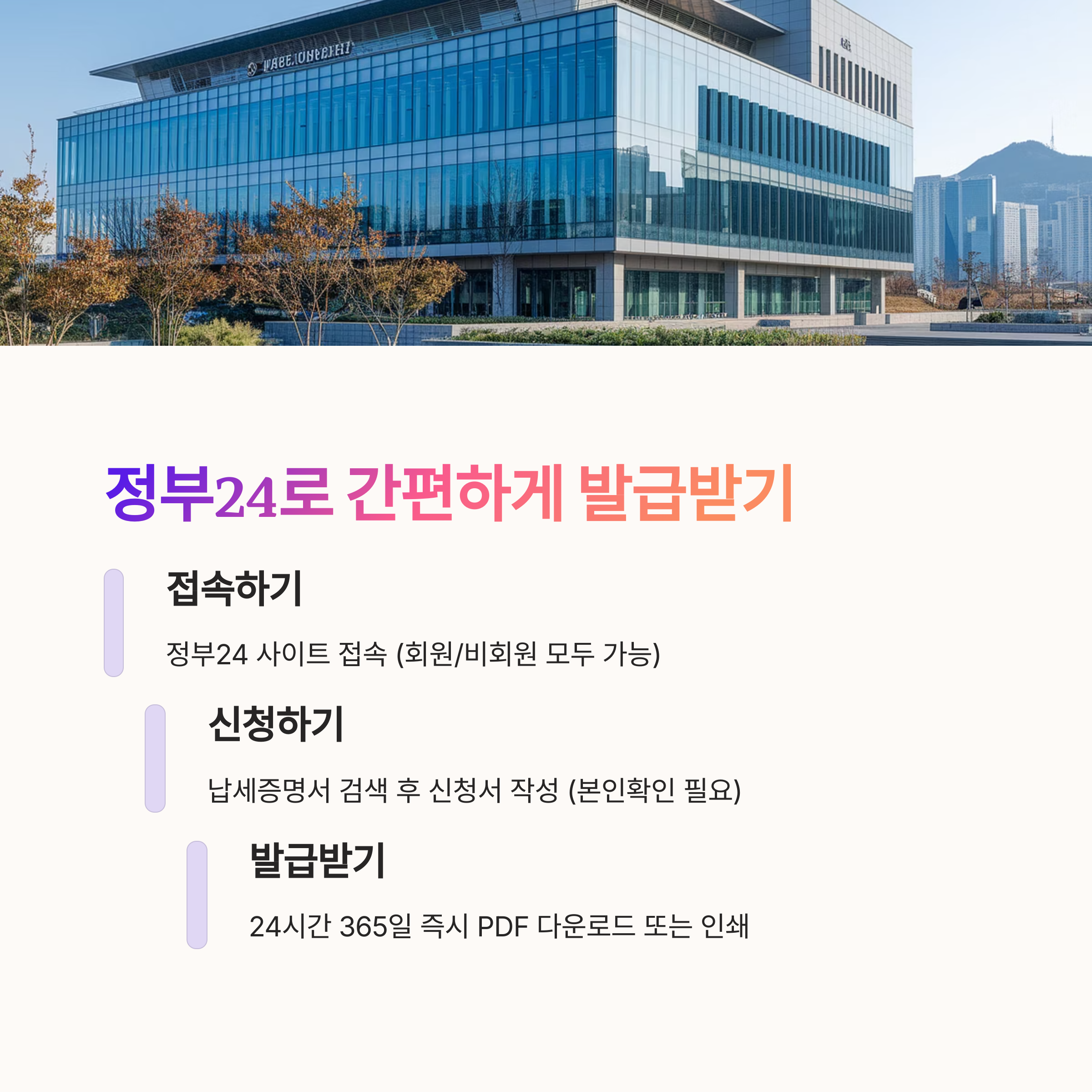 "온라인이 불편한 분들은 직접 방문해도 납세증명서를 받을 수 있습니다"
