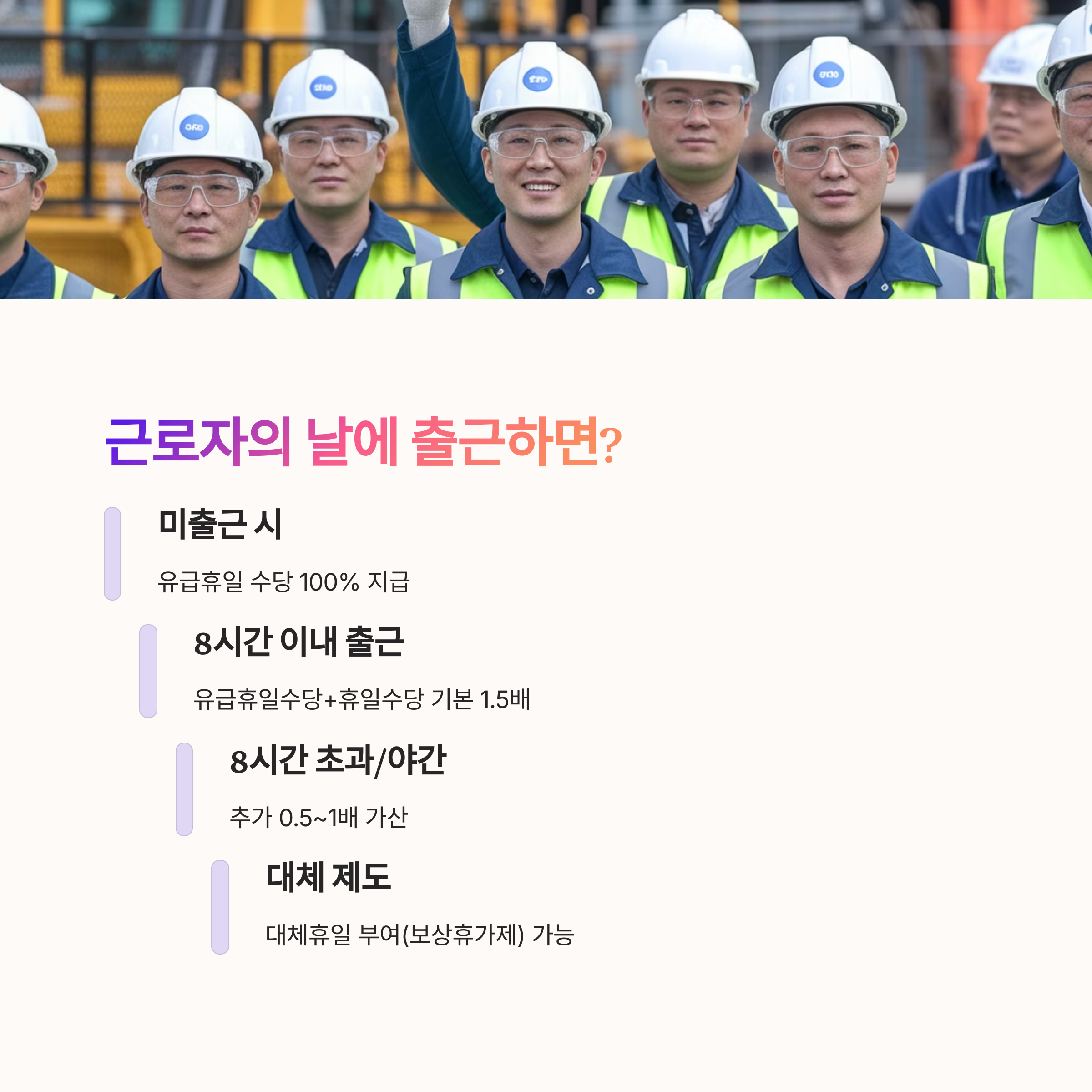 "출근한 경우에는 최대 1.5배 수당이 붙는다"는 사실, 잊지 마세요!