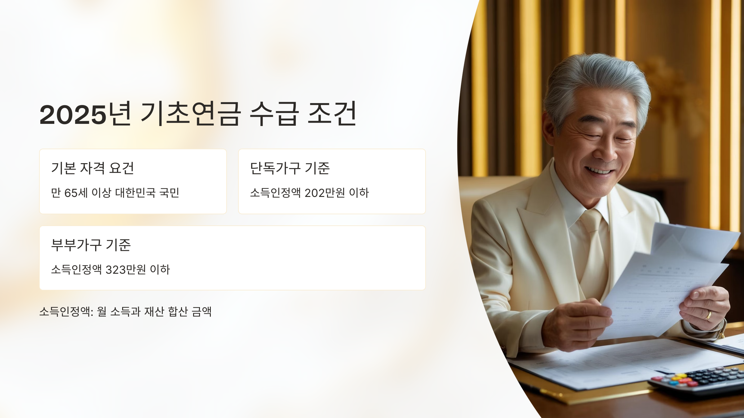 2025년 기준으로 기초연금을 받을 수 있는 기본 조건은 다음과 같습니다.