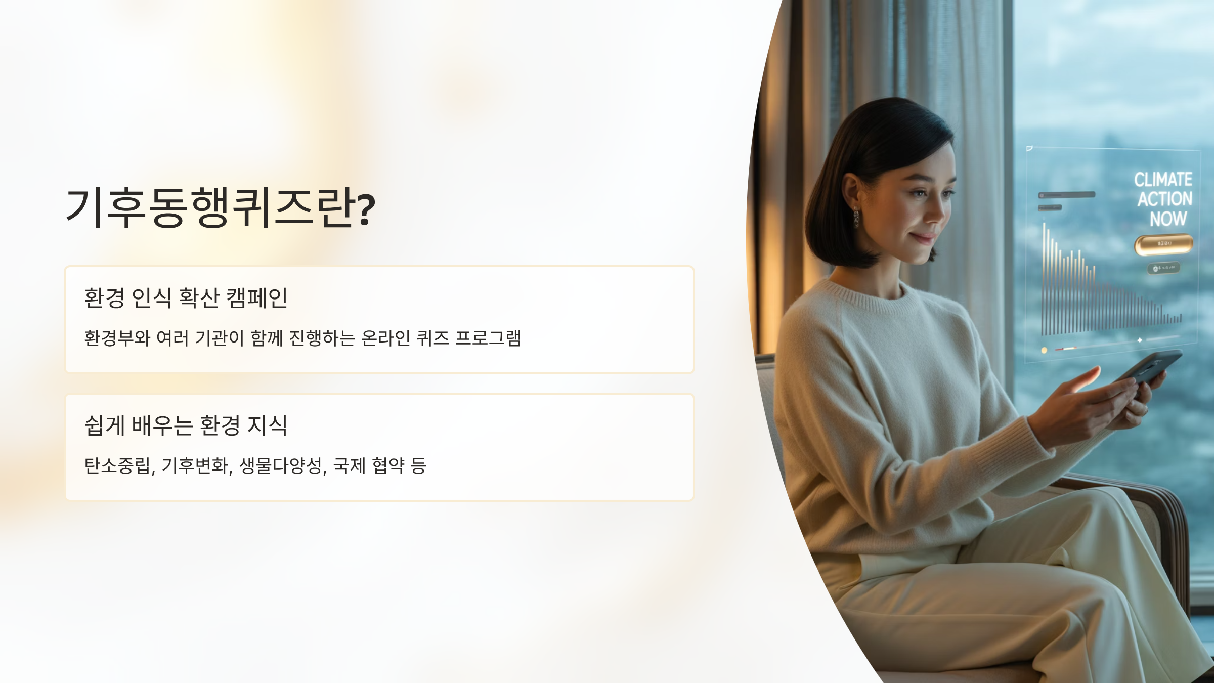기후동행퀴즈는 환경부와 여러 기관이 함께 진행하는 환경 인식 확산 캠페인의 일환으로 마련된 온라인 퀴즈 프로그램입니다.
