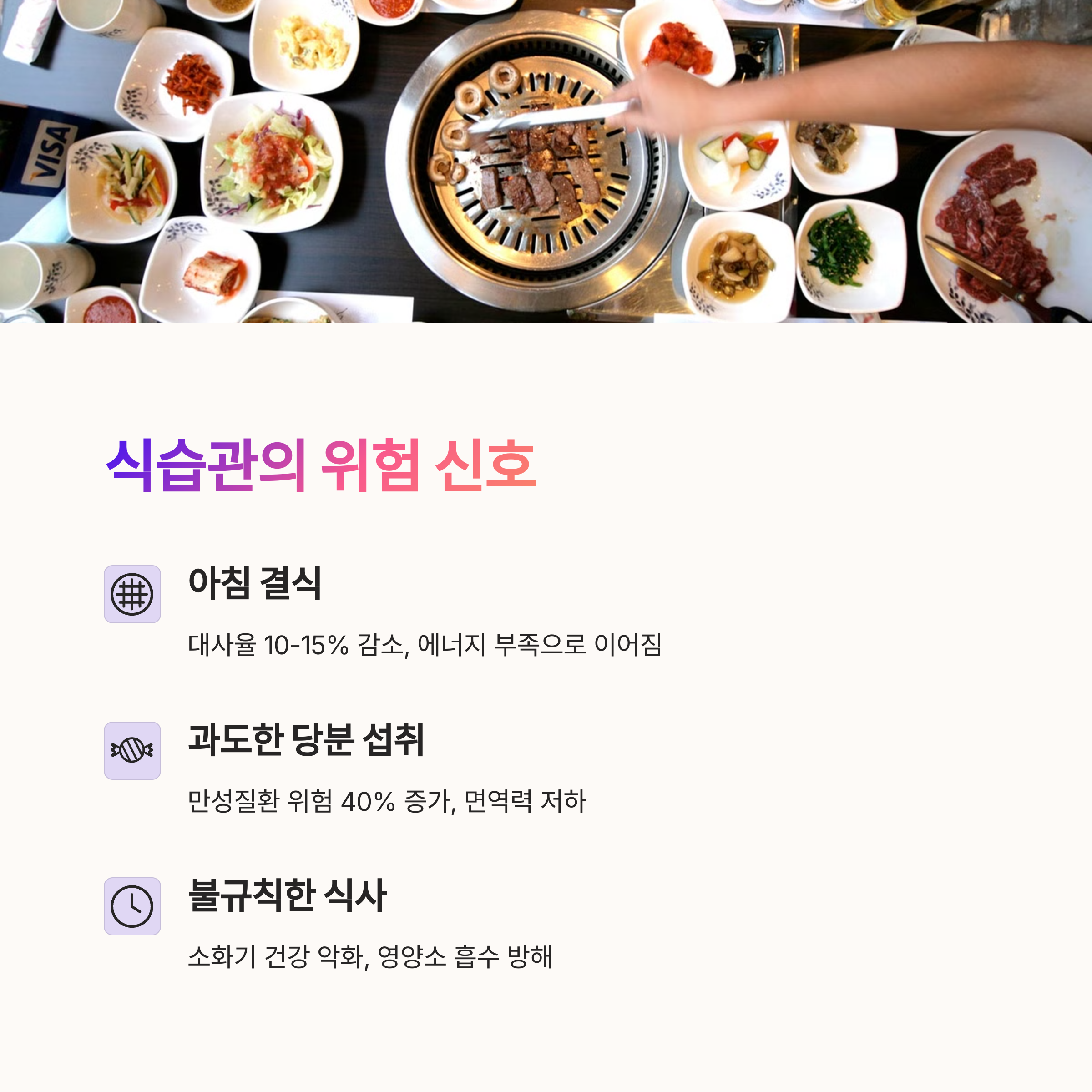 | 무의식적 습관 | 자각 없이 반복되는 행동들이 건강에 영향을 줍니다. |
