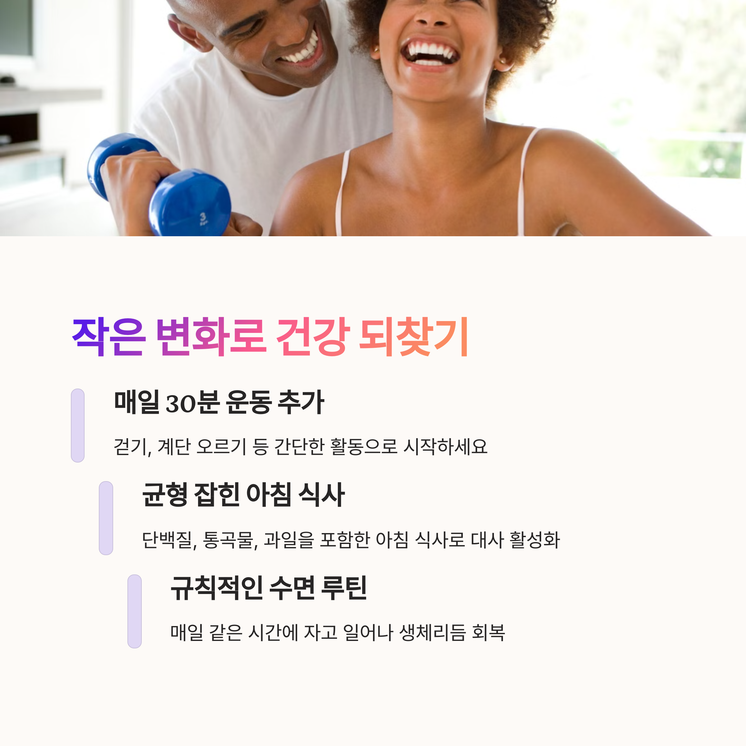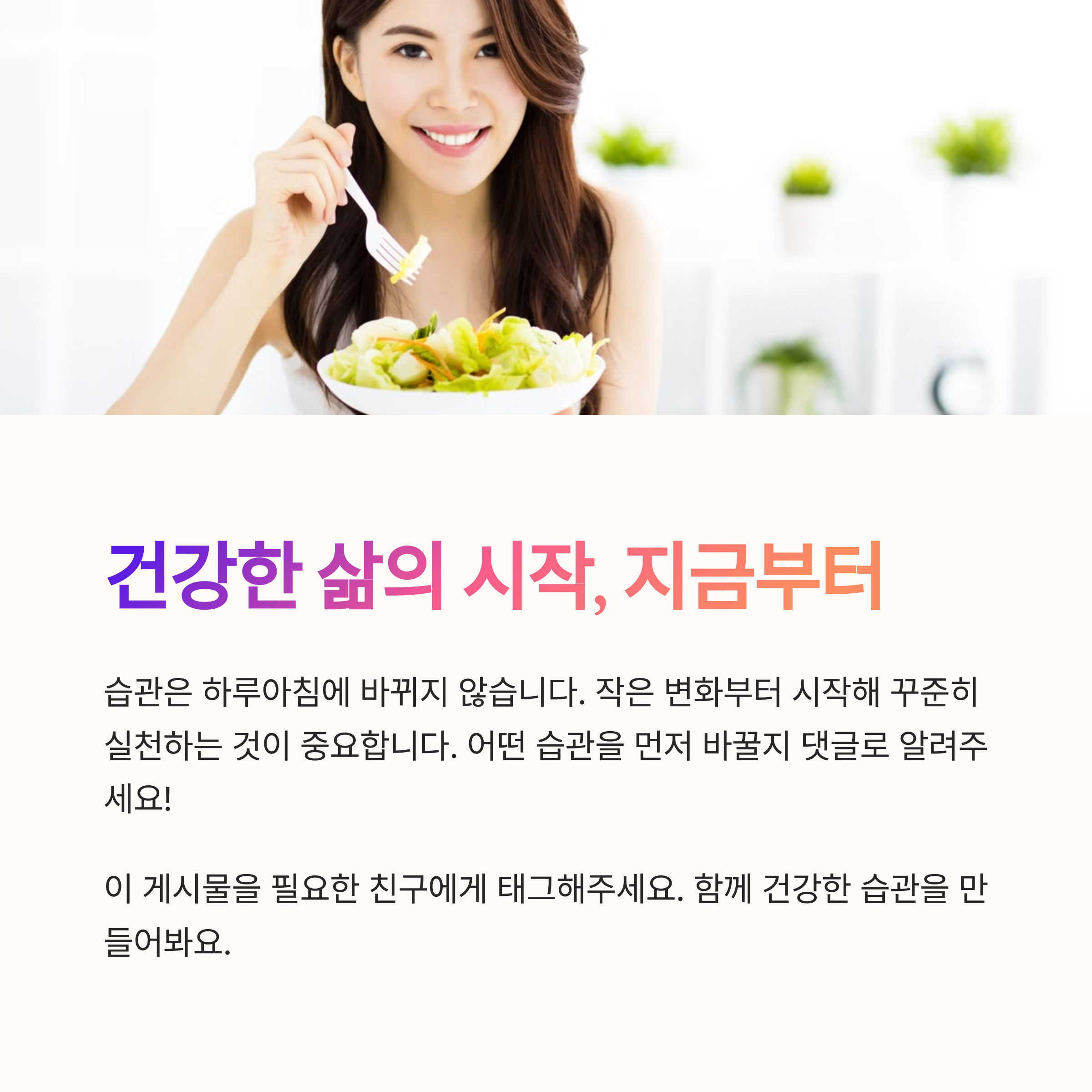 | 습관 개선 필요성 | 건강을 위해서는 나쁜 습관을 인지하고 바꾸는 노력이 필요합니다. |