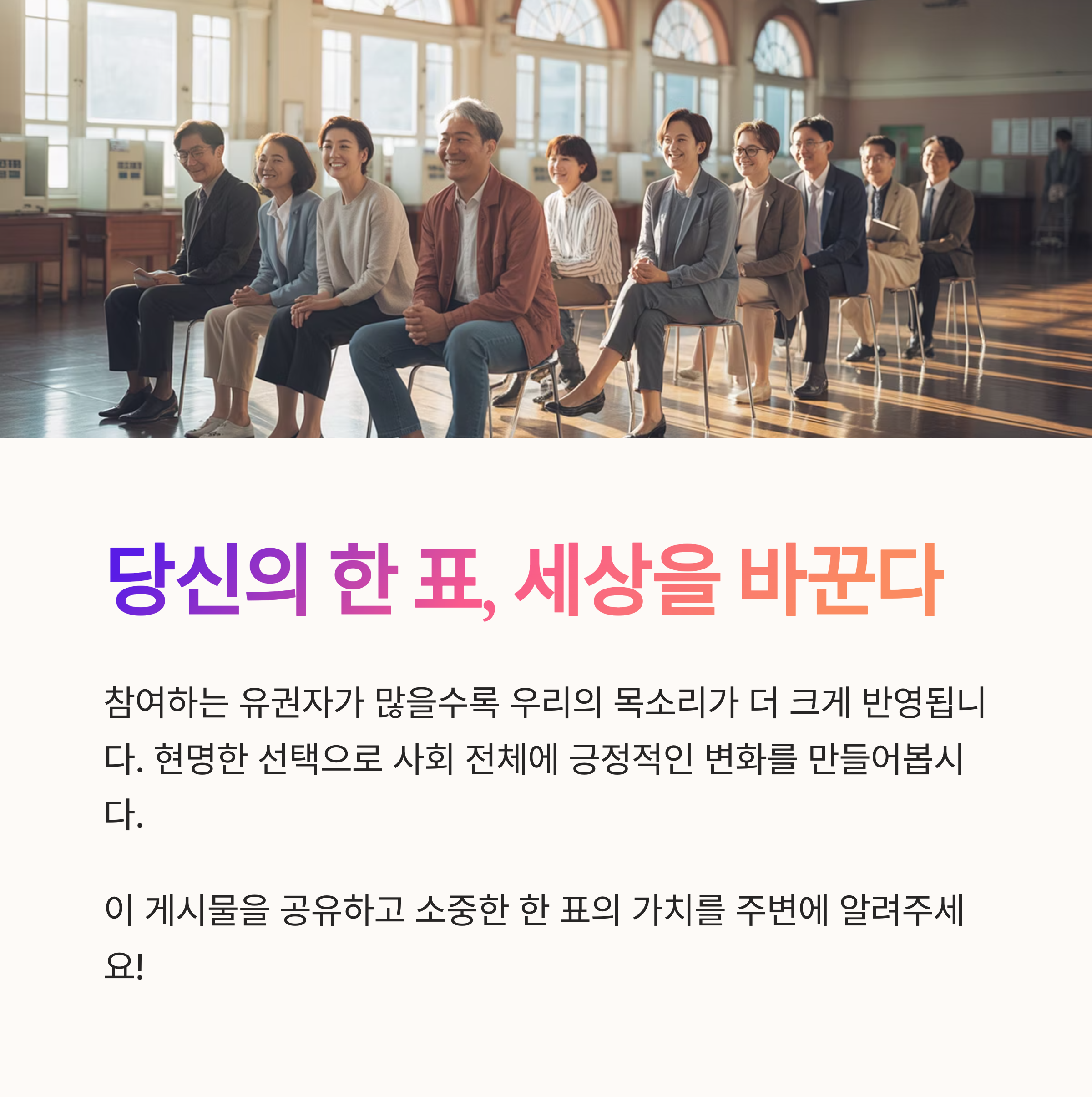 | 투표의 가치 | 나의 한 표가 미래의 정책 방향을 결정합니다. |