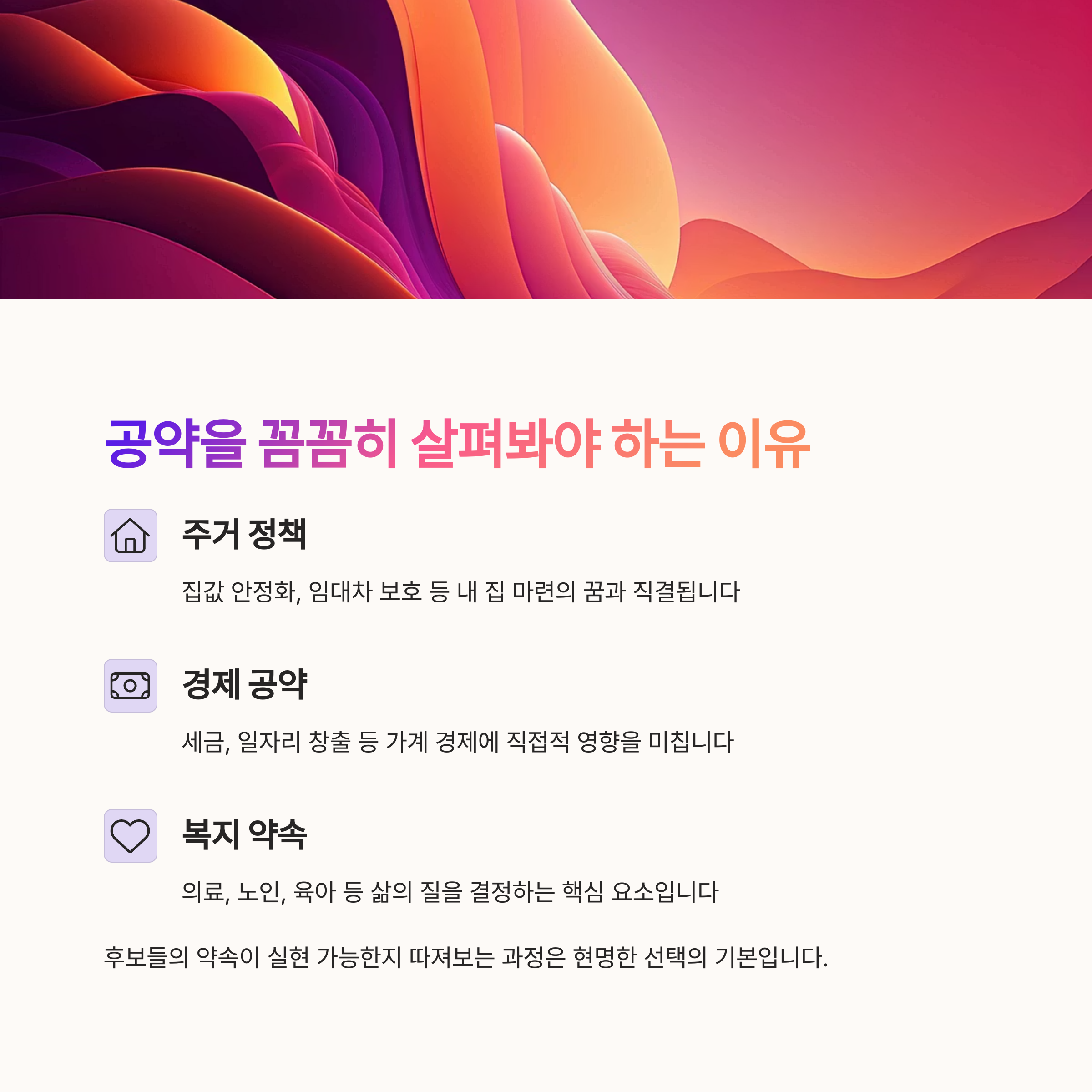 | 핵심 공약 | 실현 가능성 | 유권자 역할 |