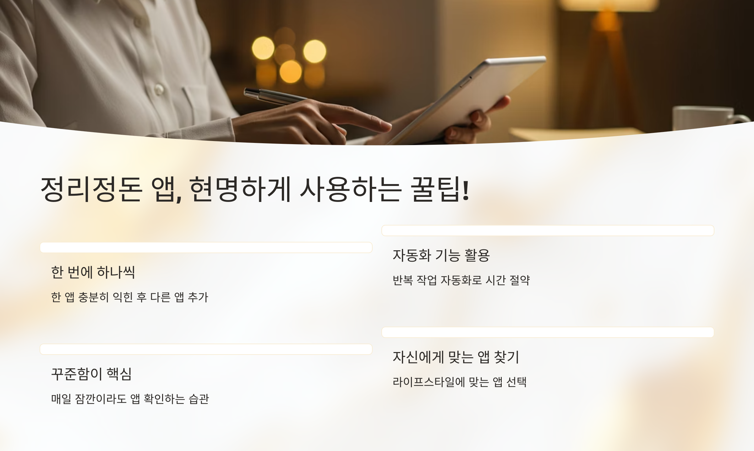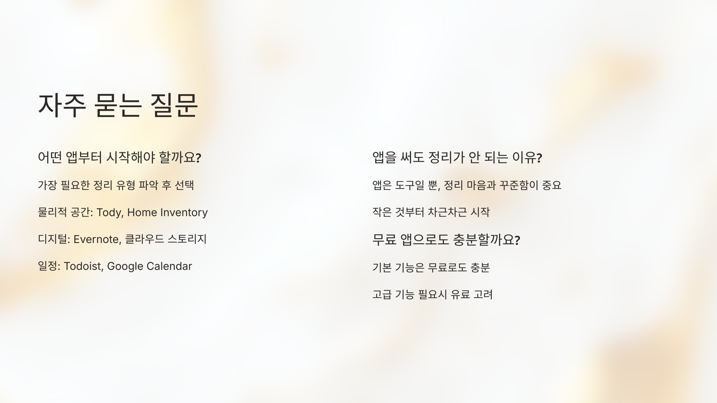 정리정돈 앱은 단순히 물건이나 일정을 관리하는 도구를 넘어, 우리의 삶을 더 효율적이고 여유롭게 만들어주는 강력한 파트너가 될 수 있어요.
