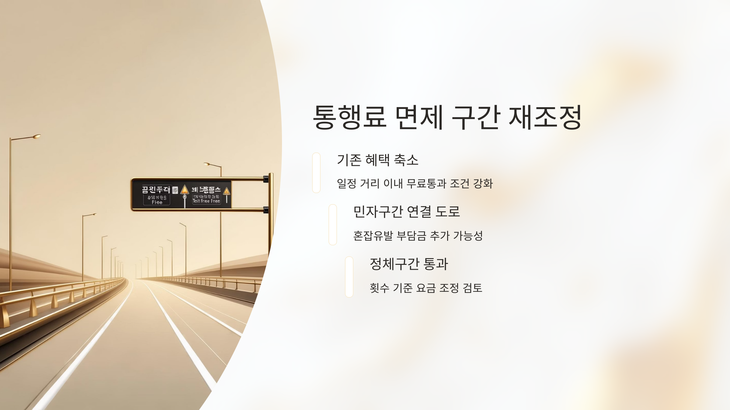 | 통행료 면제 | 일부 구간 | 조건 강화 |