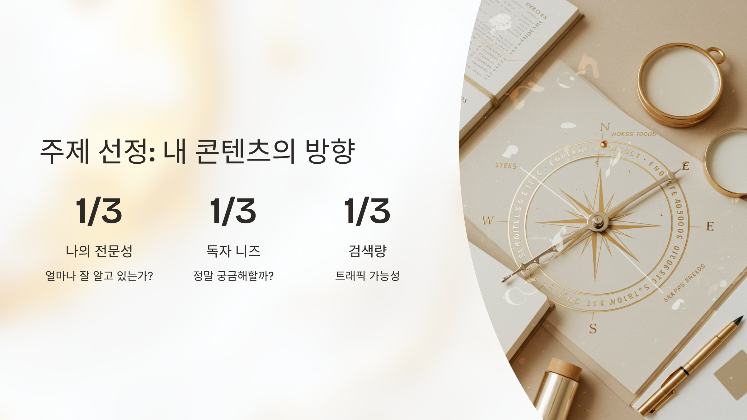 최적 주제 = (나의 전문성 ∩ 독자 니즈) + 검색량