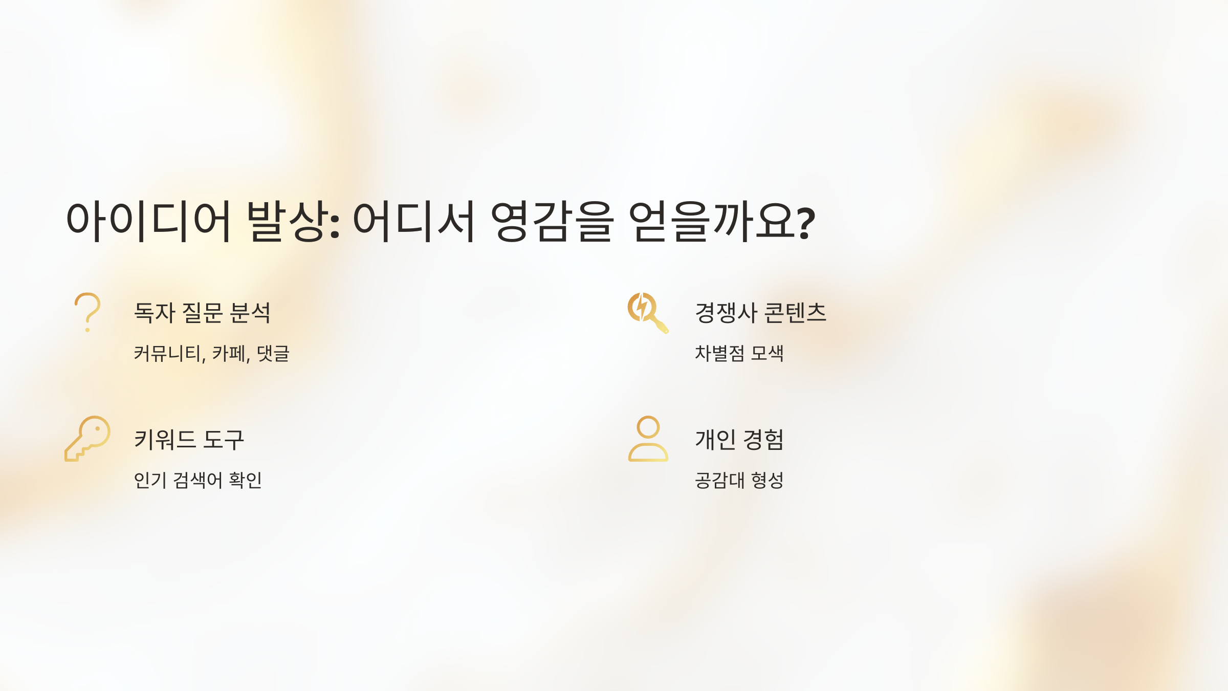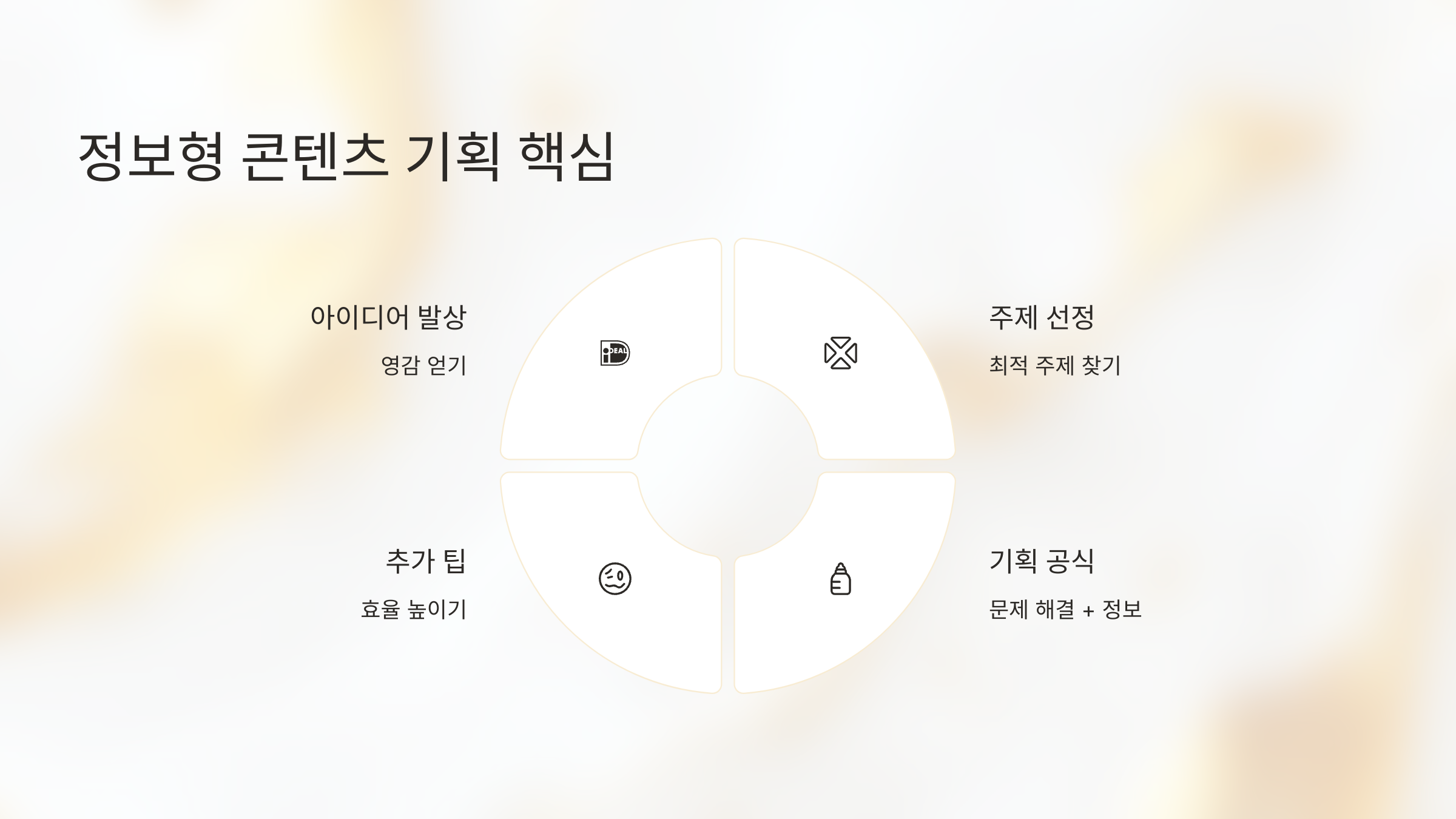이처럼 아이디어 발상부터 주제 선정까지 체계적으로 접근하면, 독자에게 사랑받는 정보형 콘텐츠를 만들 수 있답니다.