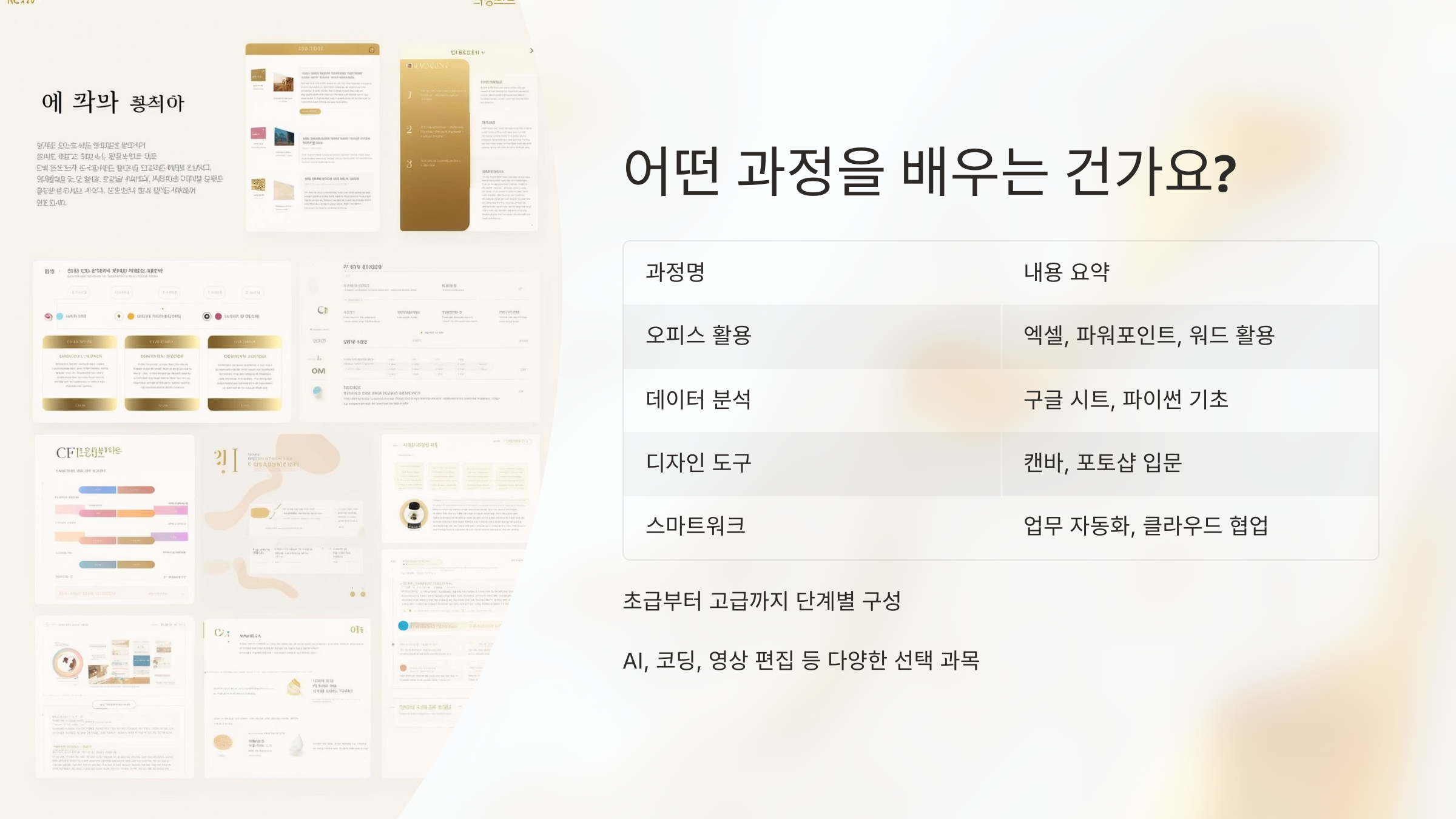 이 외에도 AI, 코딩, 영상 편집까지 선택 과목도 다양합니다.