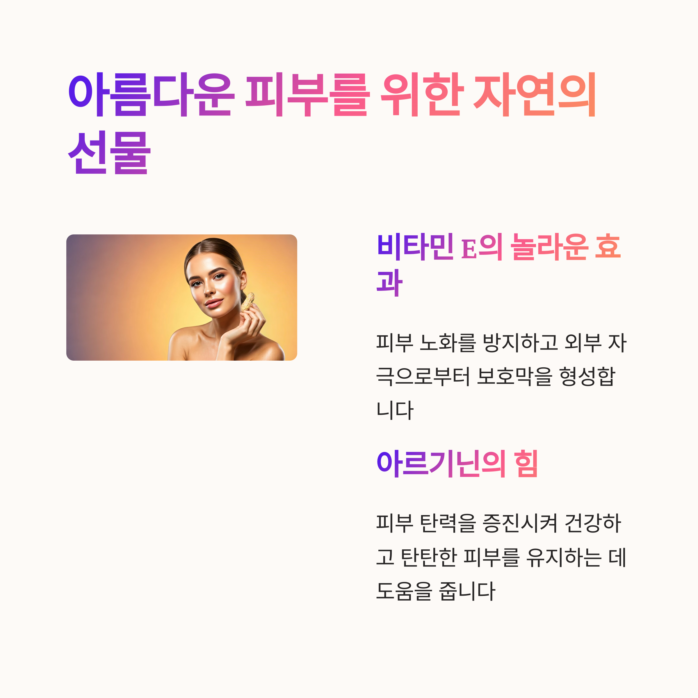 | 심장, 피부, 장 건강까지 전반적 효과 | 하루 한 줌 섭취 권장, 식사 대용도 가능 | 어린이 섭취 시 반드시 보호자 주의 필요 |