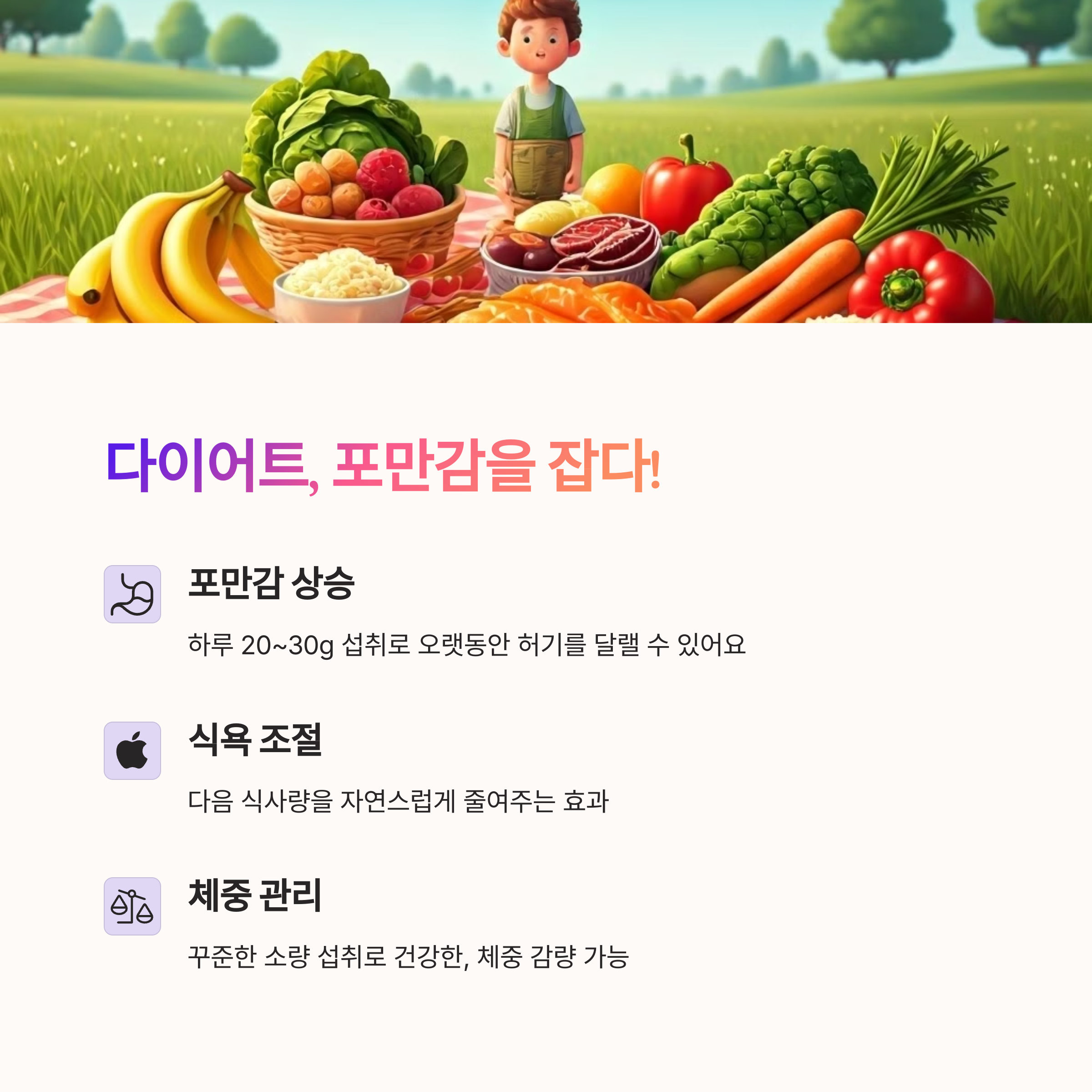 | 다이어트 효과 | 적정량 섭취 시 포만감 유도로 식욕 억제 도움 |