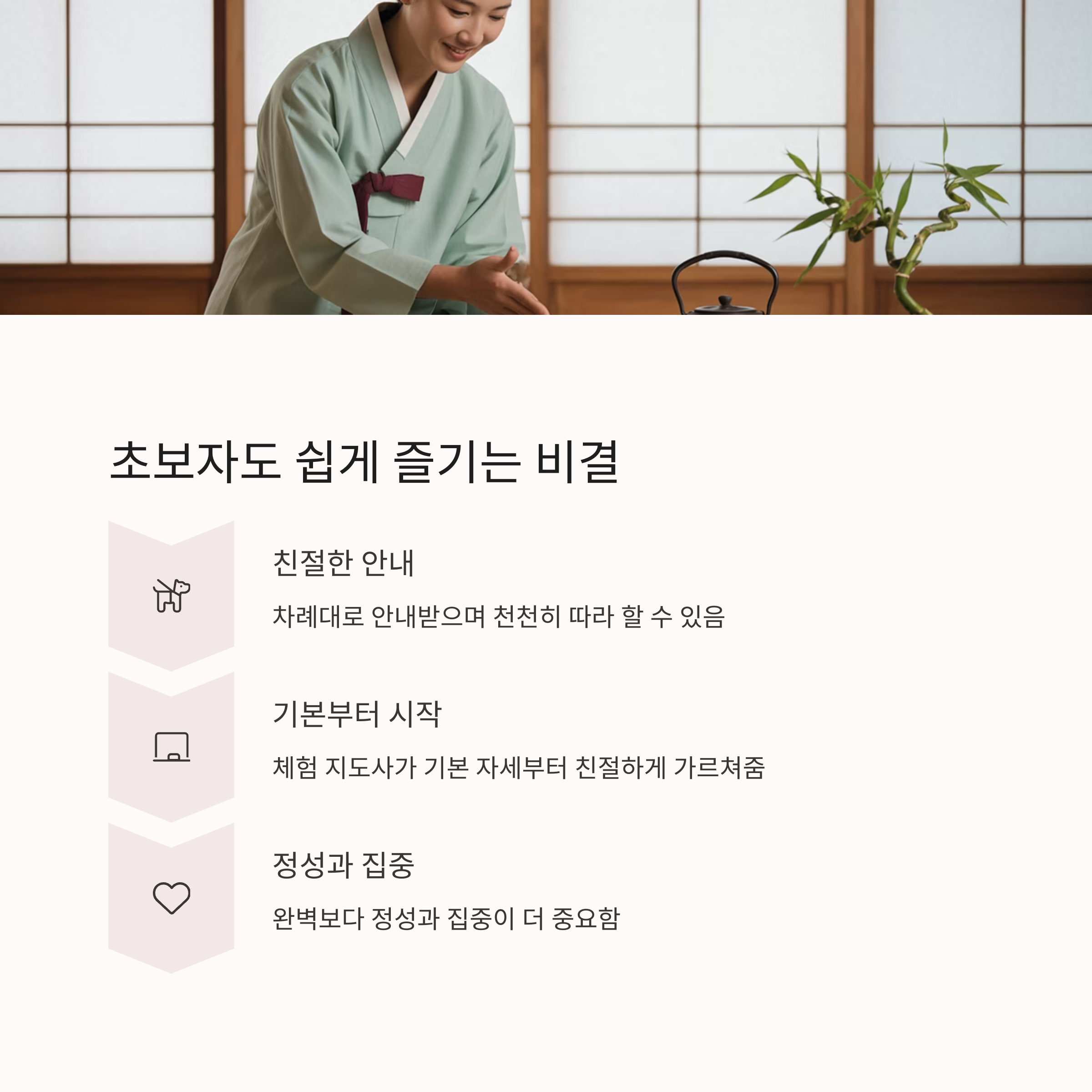 초보자도 금세 다도 흐름에 몰입할 수 있습니다.