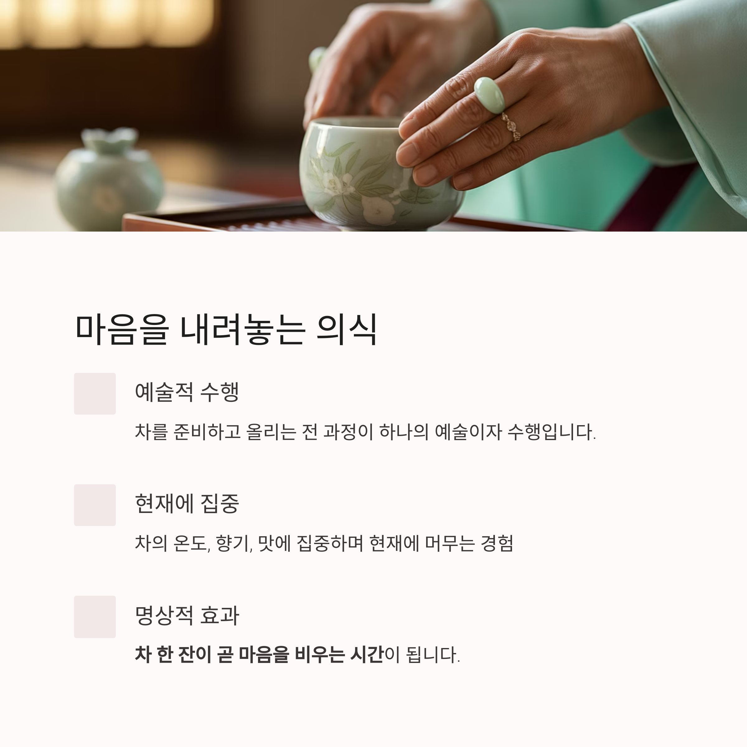 조용한 찻자리, 마음을 내려놓는 의식