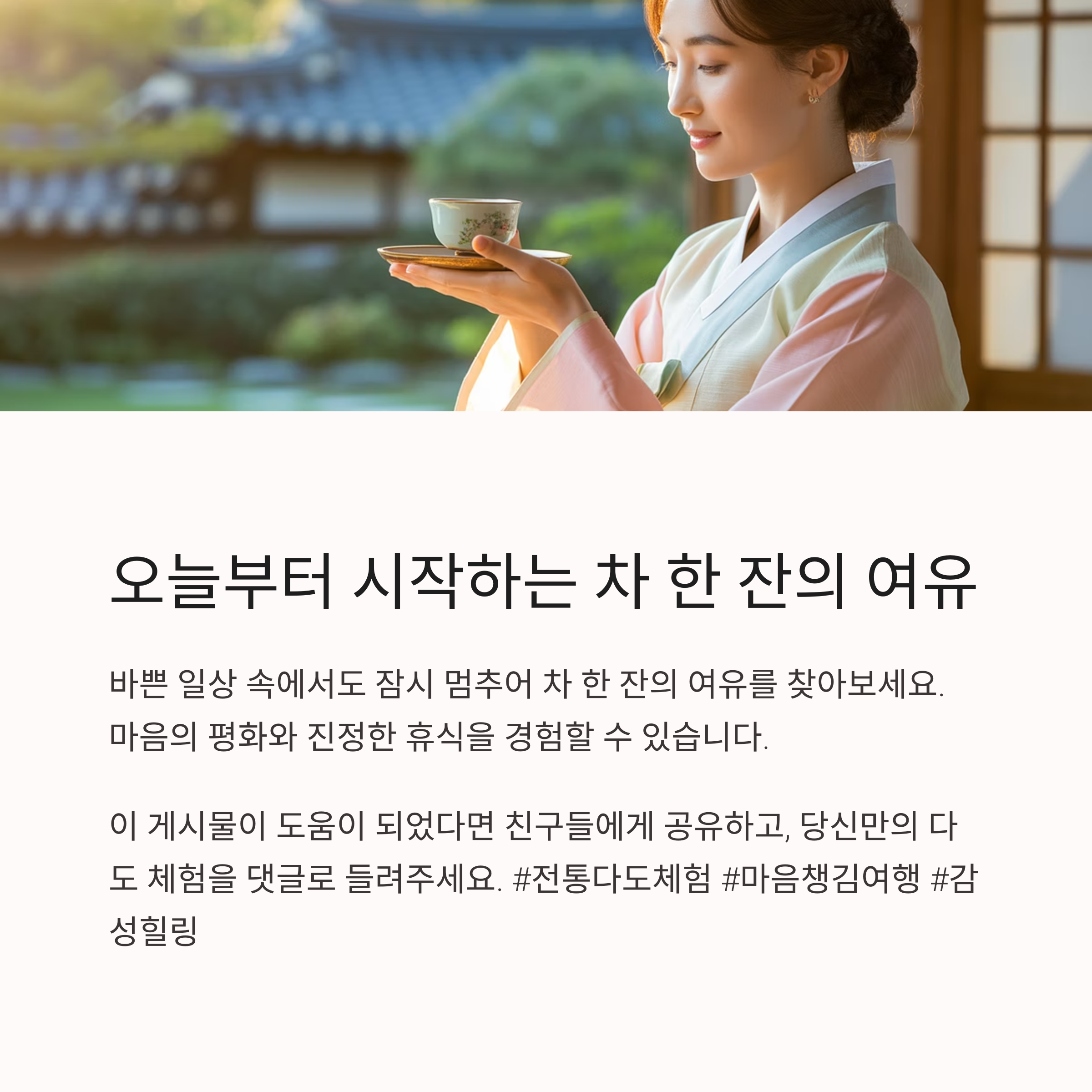 **"차 한 잔이 곧 마음을 비우는 시간"**이라는 말이 실감납니다.
