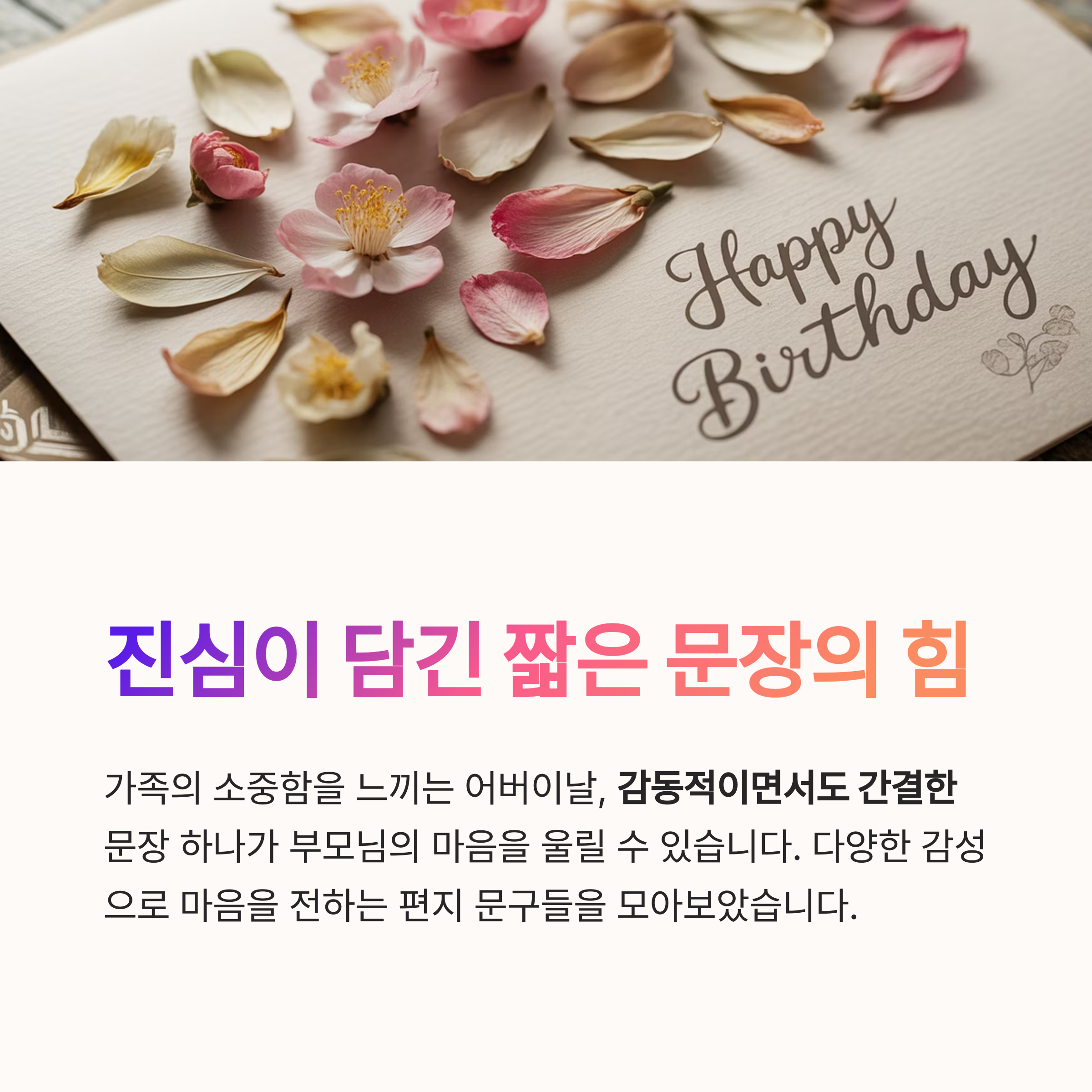 짧지만 진심이 담긴 문장은 부모님의 마음을 울릴 수 있습니다.