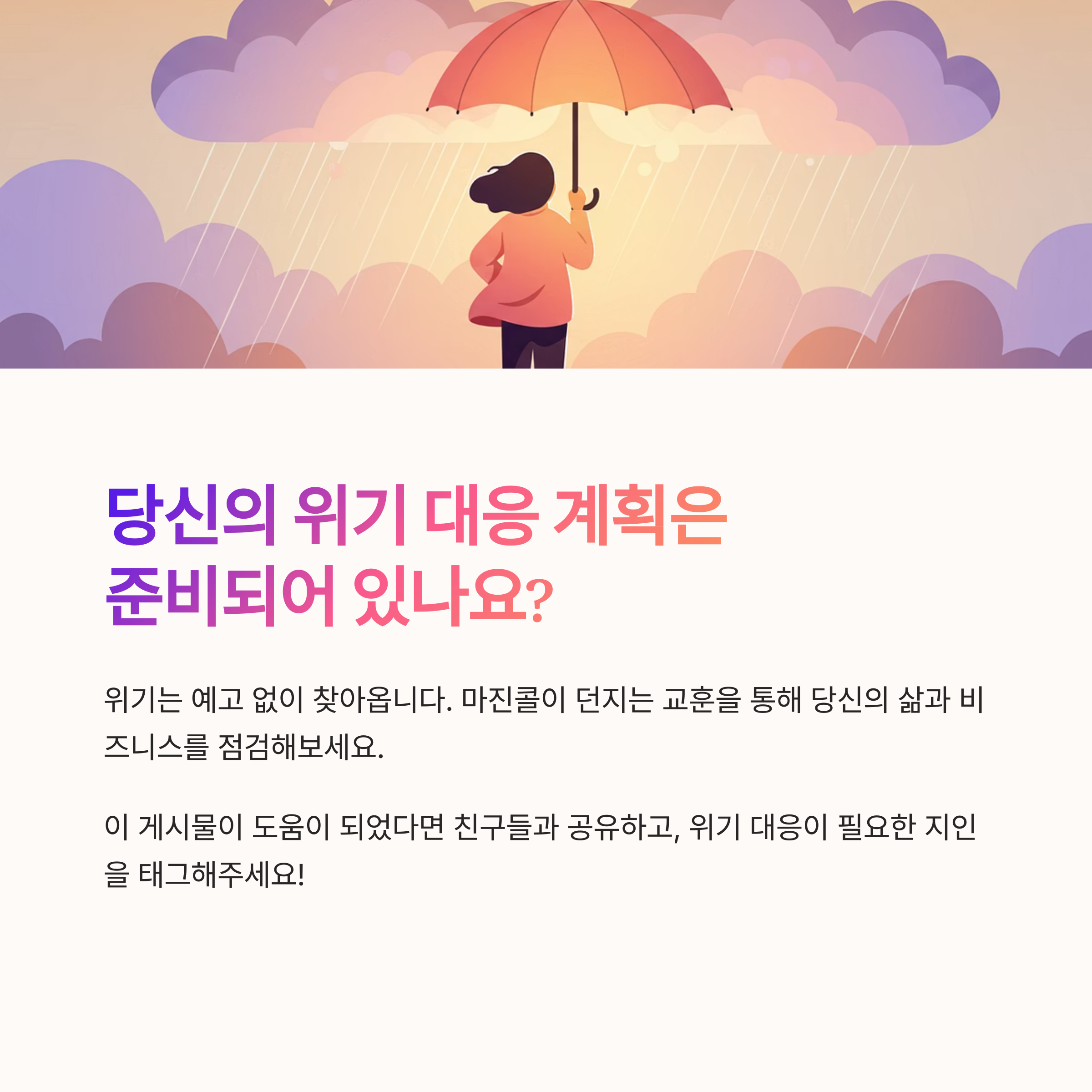 "위기는 갑자기 오지만, 대응은 미리 준비된 사람의 몫"이라는 점입니다.