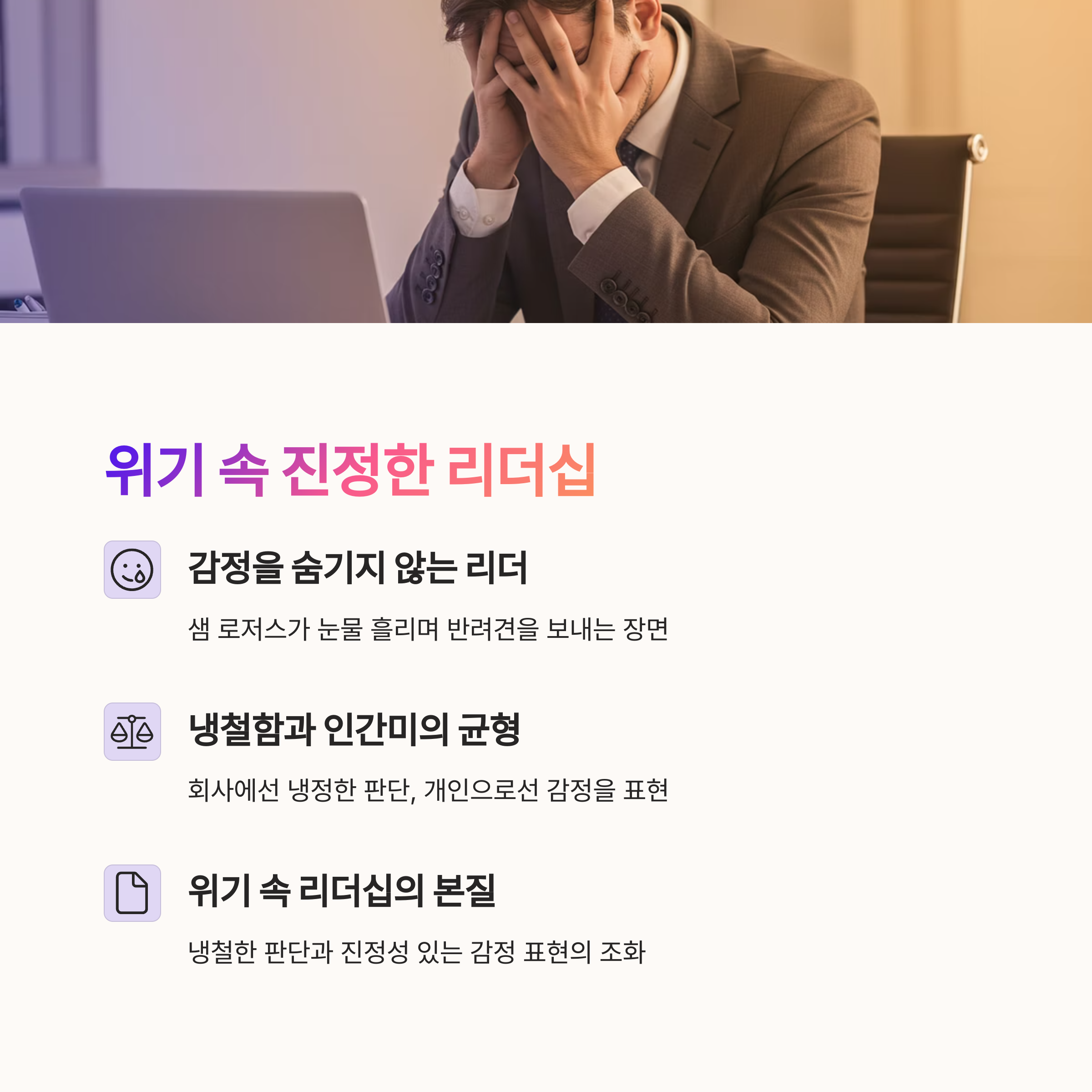 "진짜 리더는 냉철한 판단을 하되, 감정을 숨기지 않습니다."