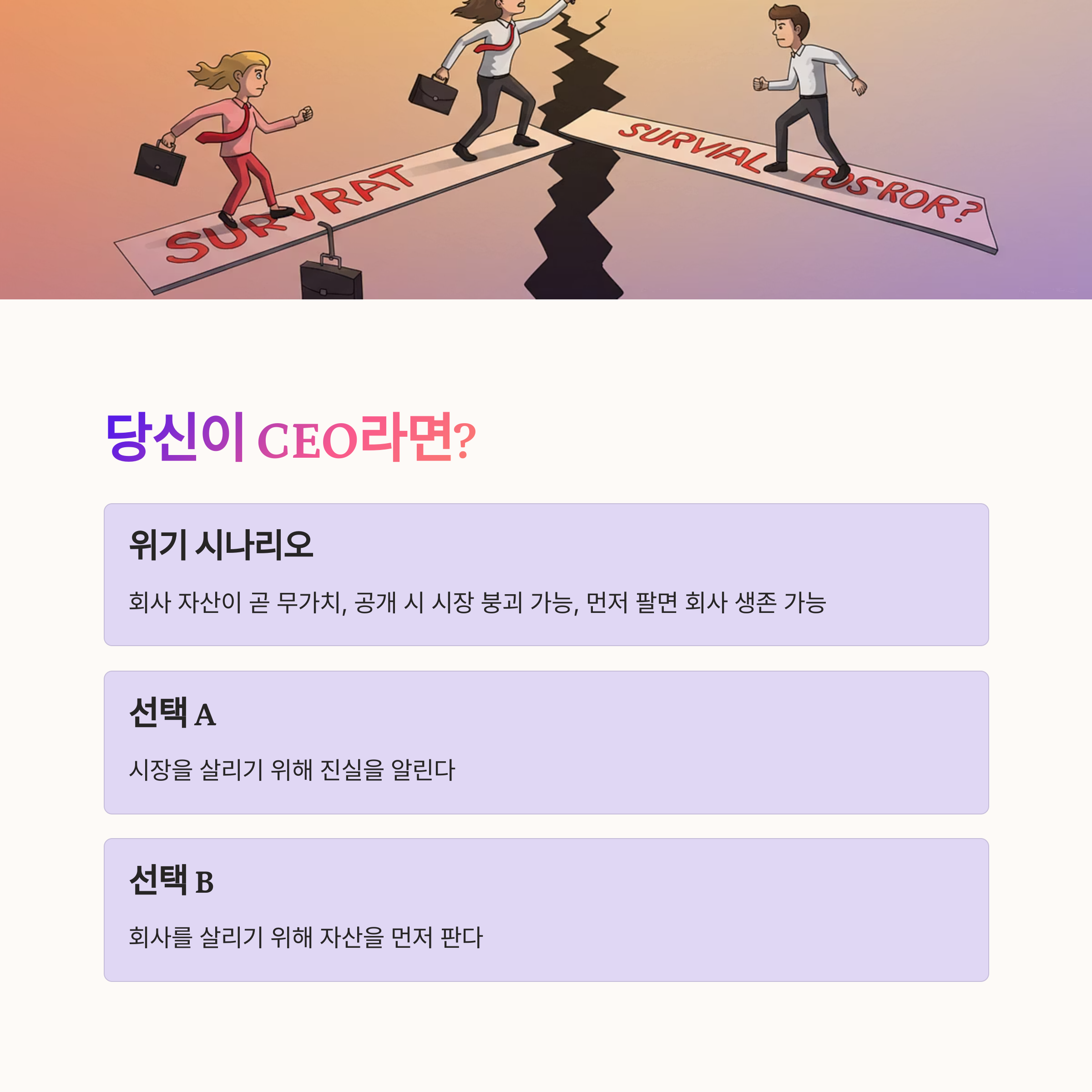 위기관리 시나리오: 당신이 CEO라면 어떤 선택을 할 것인가?