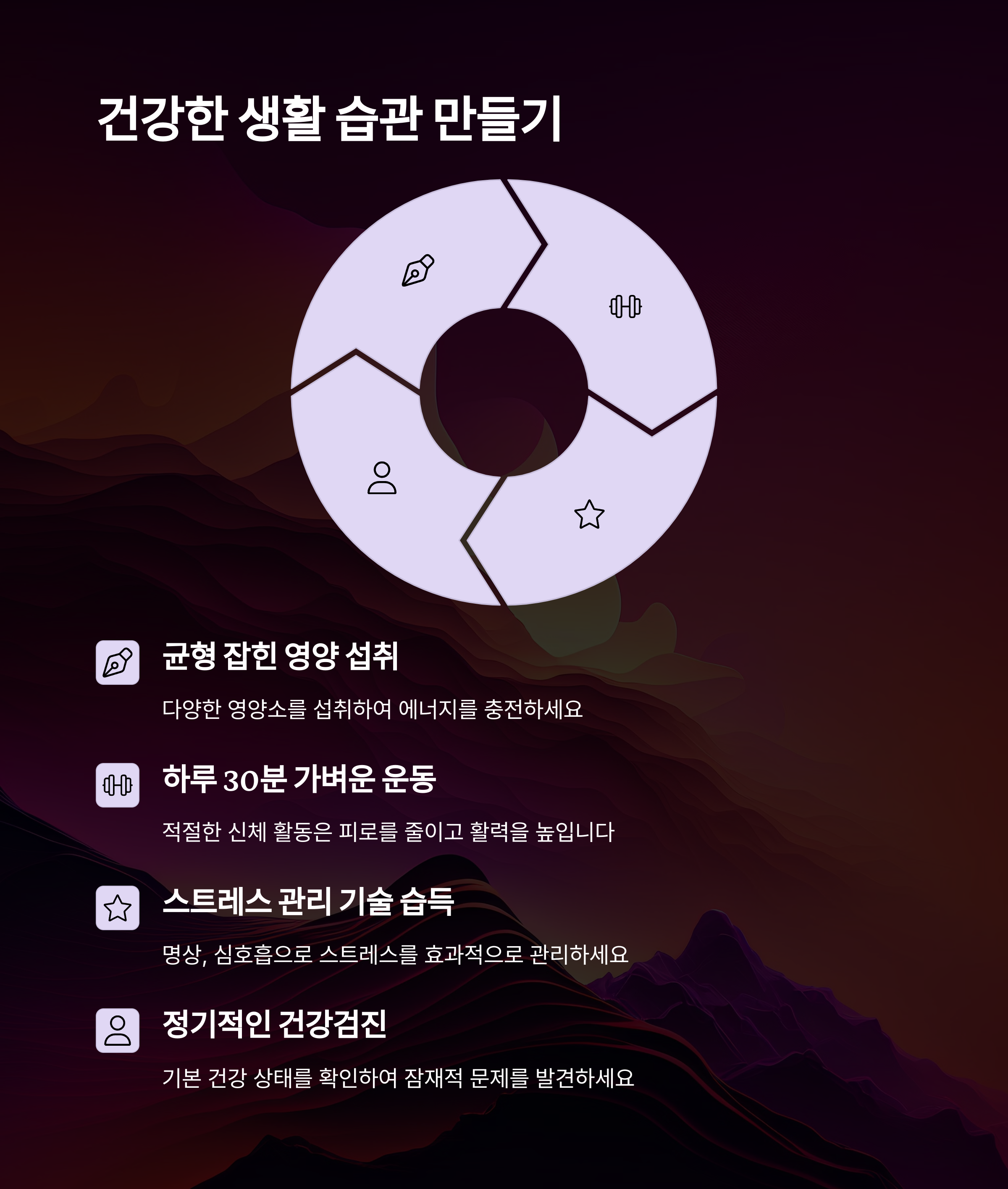 | 회복 습관 | 규칙적인 수면, 영양 섭취, 가벼운 운동 실천 |