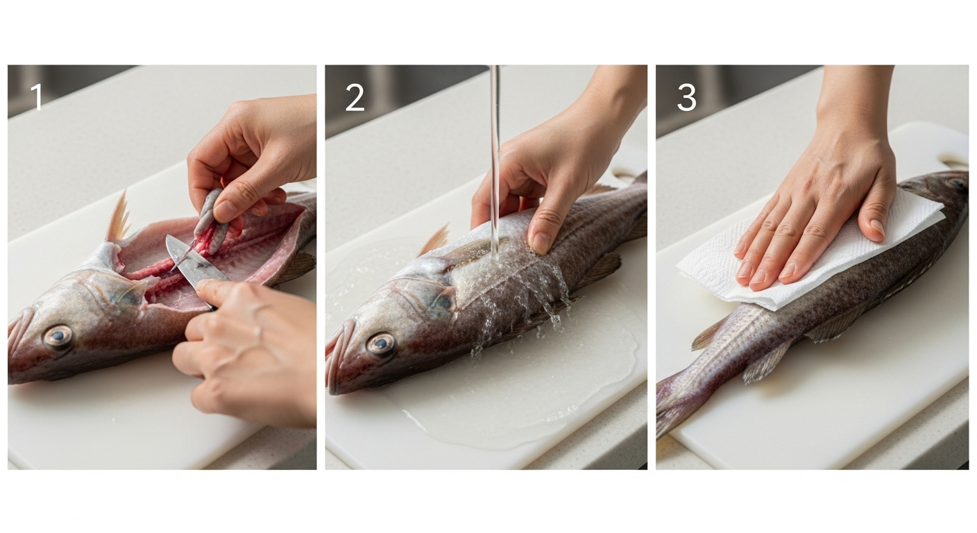- 물기 제거: 키친타월로 동태의 물기를 충분히 제거해 주세요. 물기가 많으면 끓일 때 비린내가 더 쉽게 퍼질 수 있습니다.