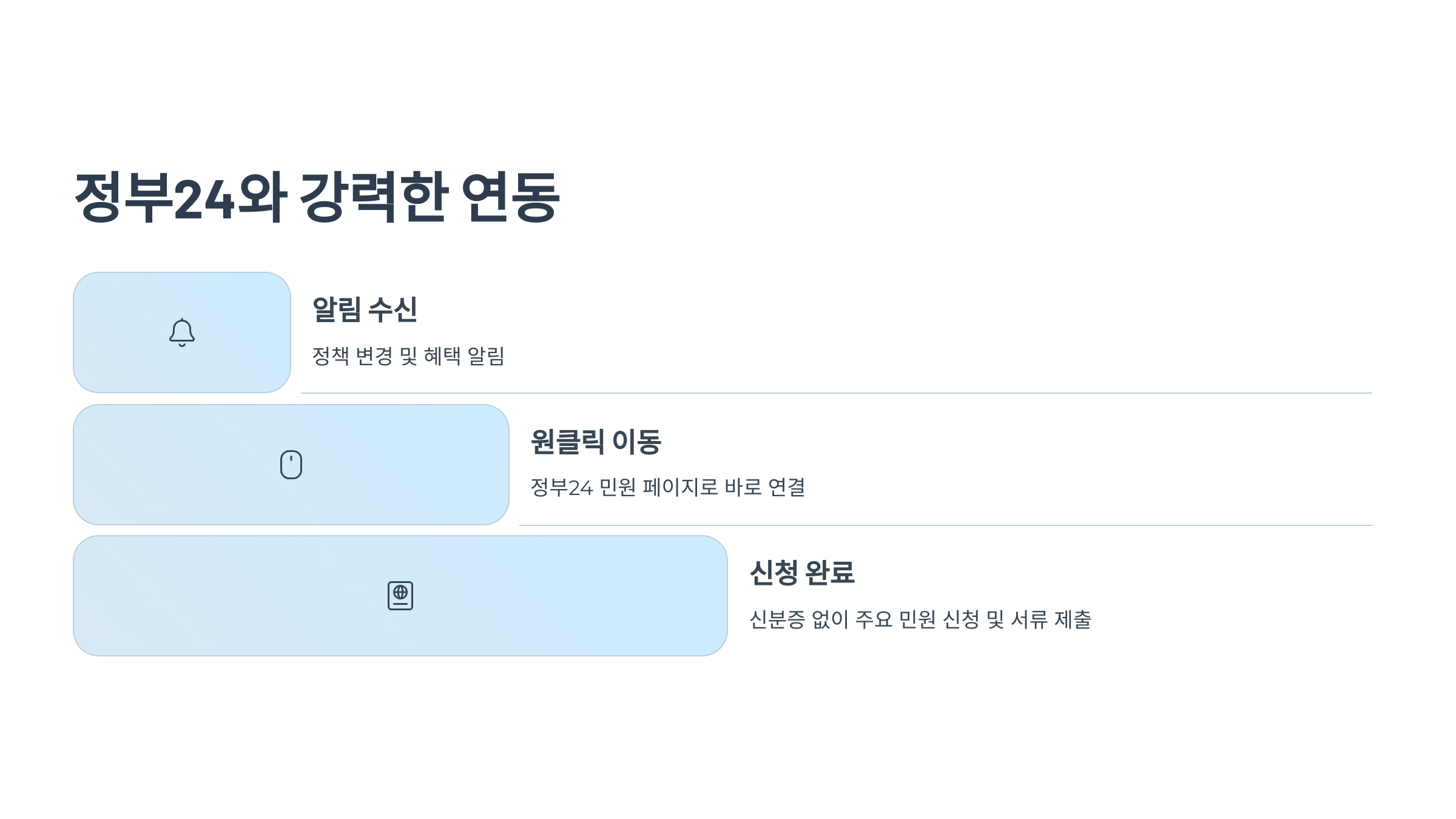 정책 내용을 확인하고 클릭 한 번으로 정부24 민원 페이지로 이동,