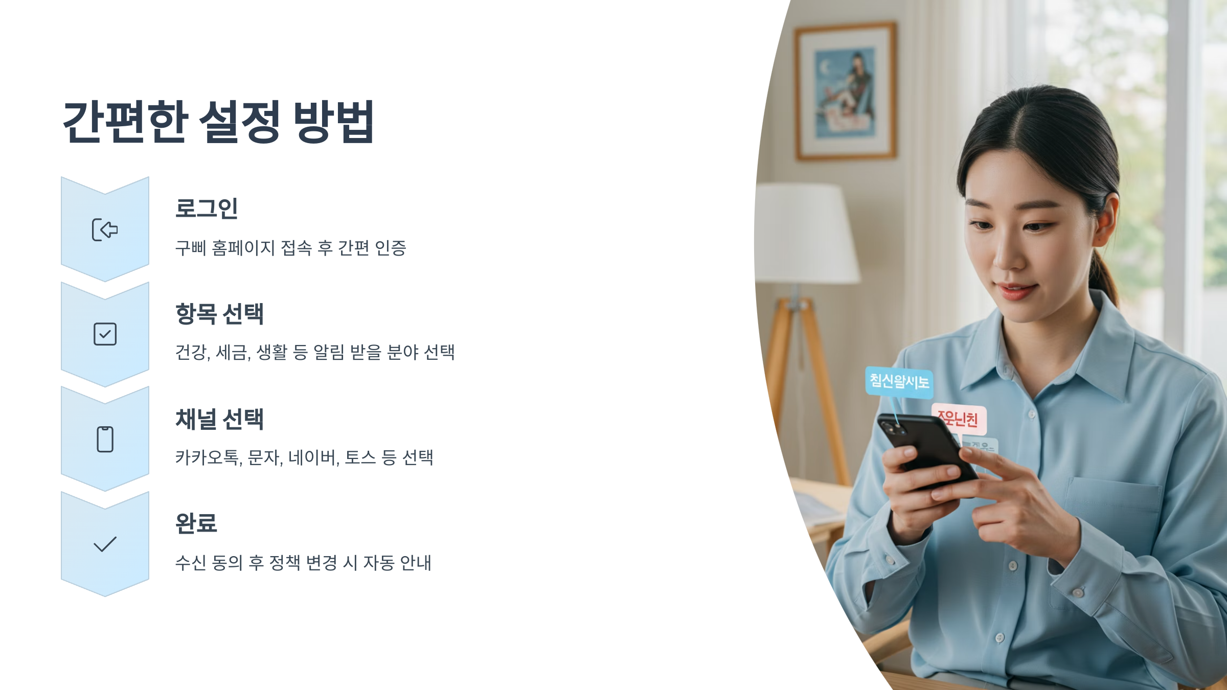 - 알림받을 항목(건강, 세금, 생활 등) 선택