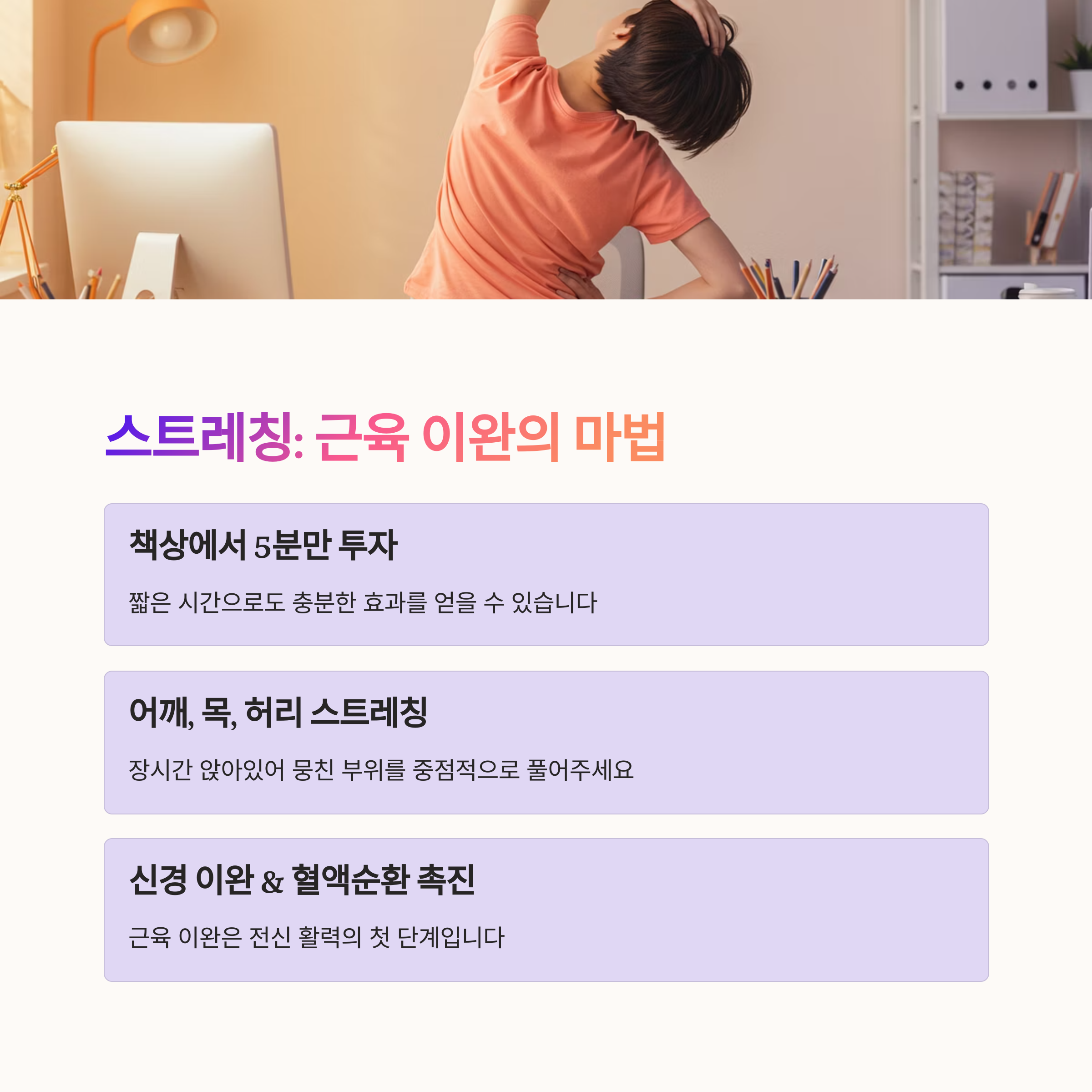 | 즉시 피로 해소법 | 누구나 지금 바로 실천할 수 있는 방법 |