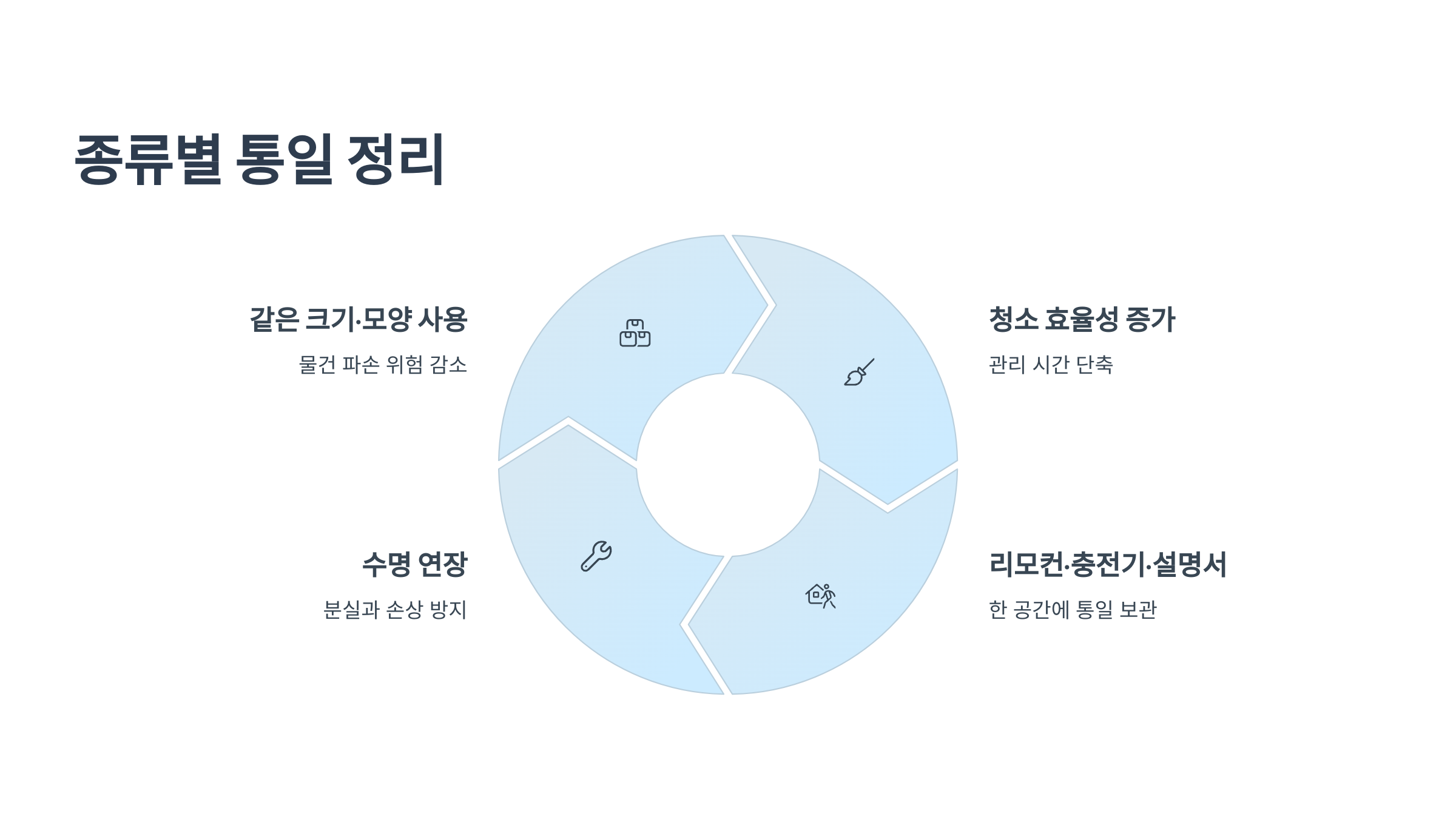 자리를 제대로 찾아주는 정리만으로도 파손, 낡음, 망가짐 확률이 확실히 줄어듭니다.
