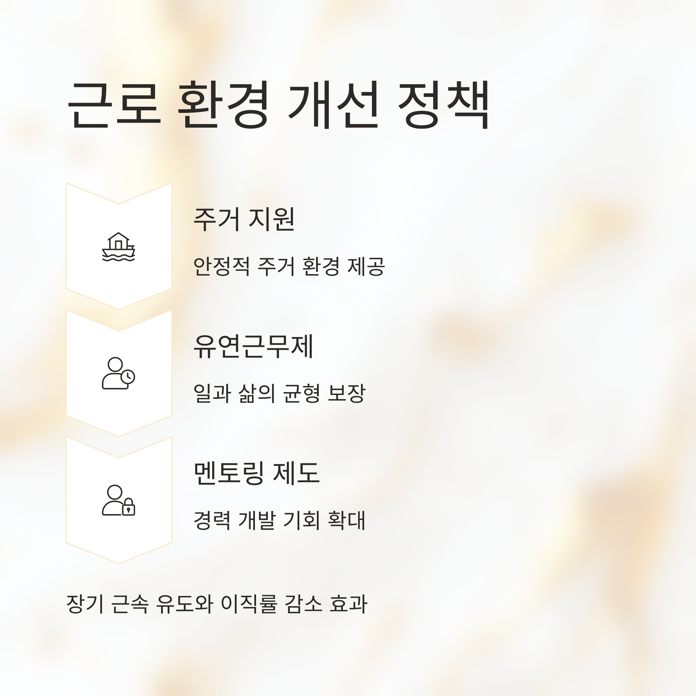 주거 지원, 유연근무제, 직장 내 멘토링 제도가 확대됩니다.