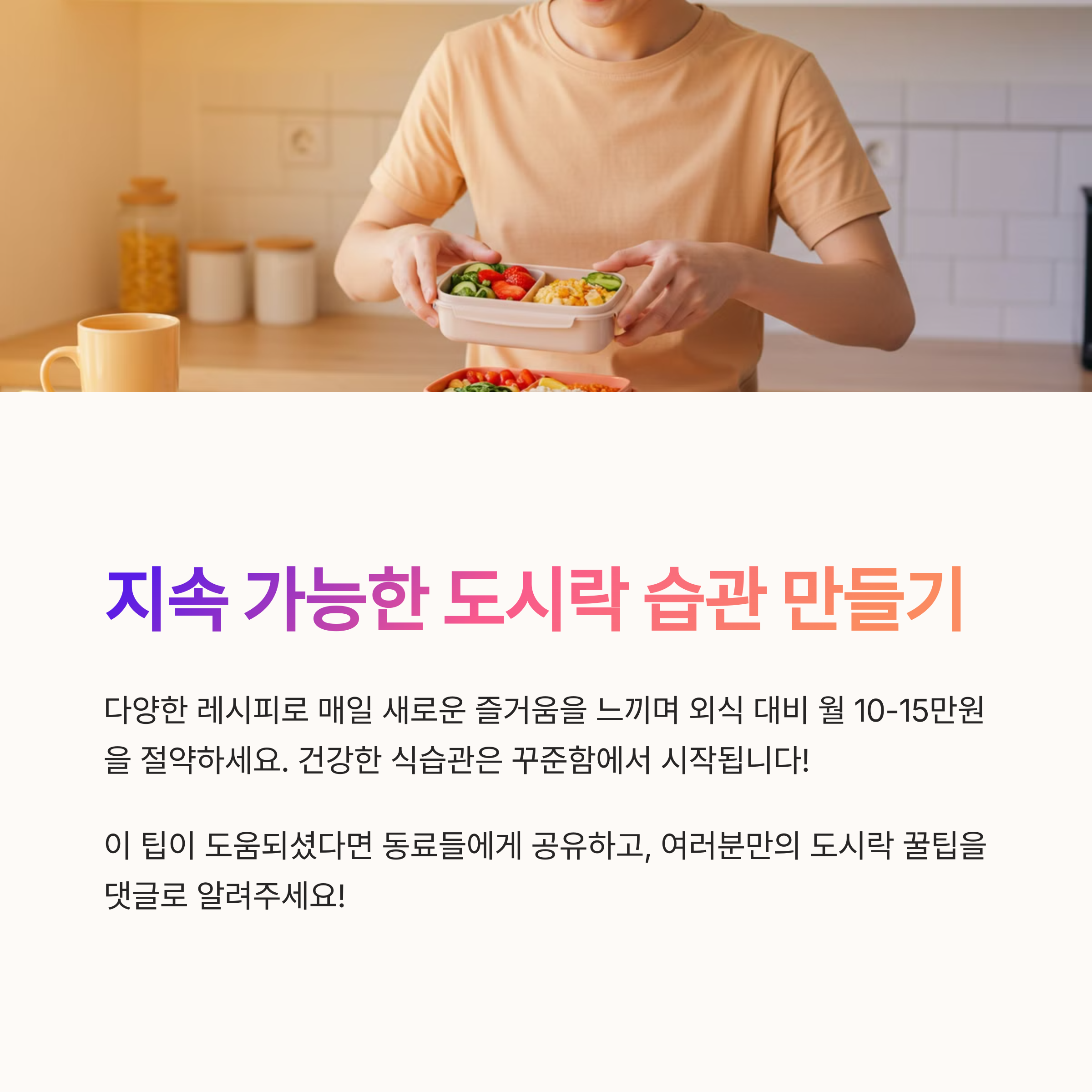 어떤 도시락이 가장 실용적으로 느껴지셨나요? 직접 실천해보신 도시락 팁이나 궁금한 점이 있다면 댓글로 자유롭게 나눠주세요. 여러분의 의견이 다음 콘텐츠에 큰 도움이 됩니다!
