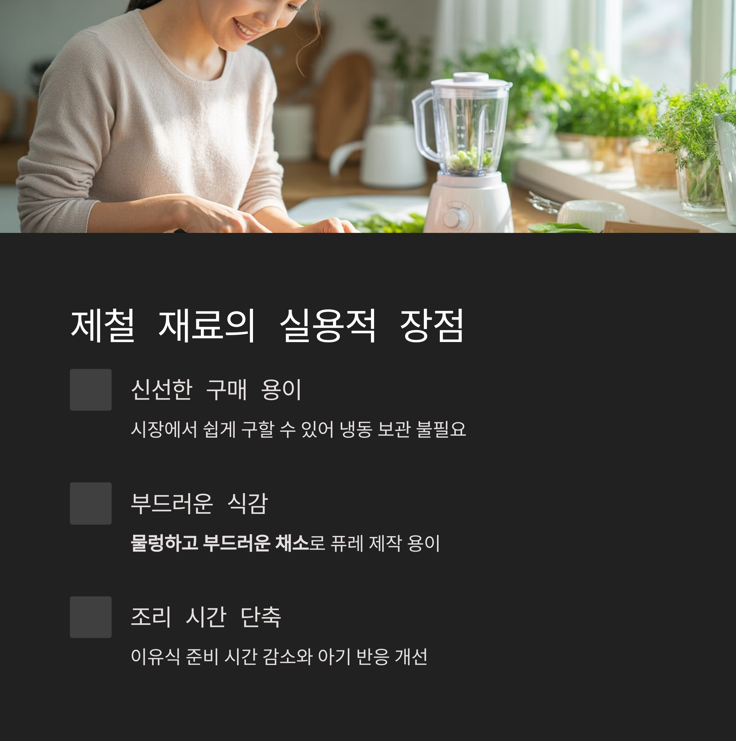 이는 이유식 만들기에 들이는 시간을 줄여주며,