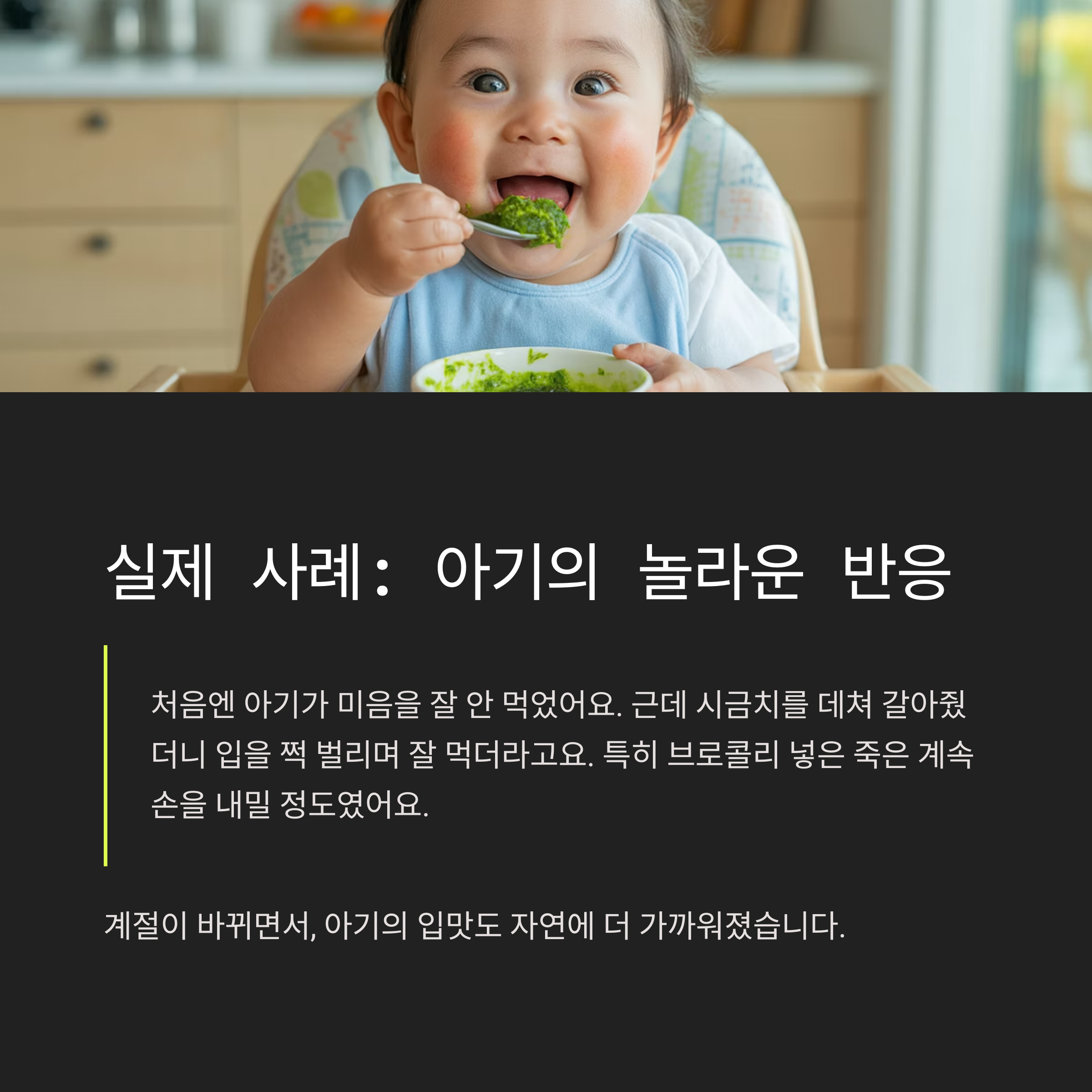 계절이 바뀌면서, 아기의 입맛도 자연에 더 가까워졌다는 걸 실감했습니다.