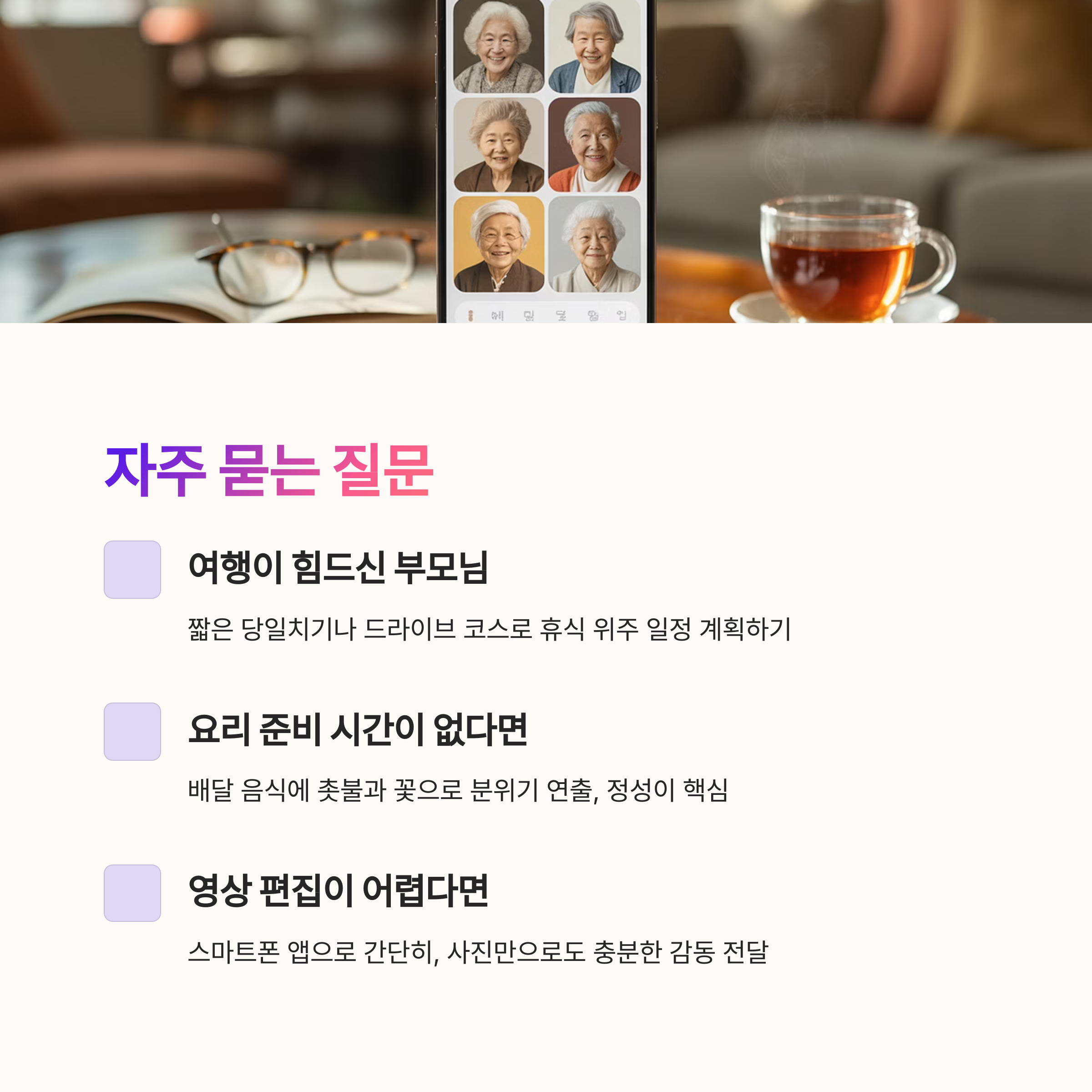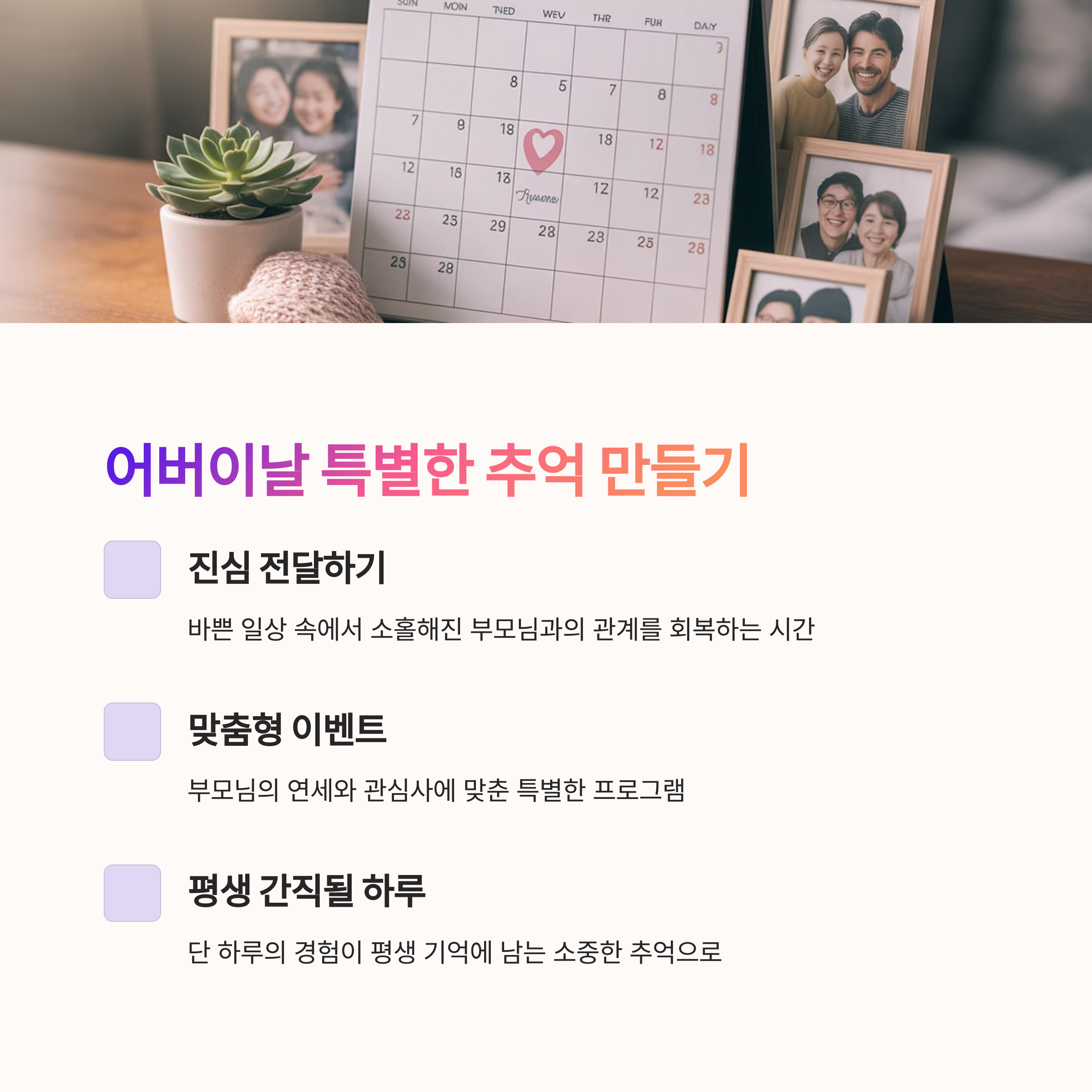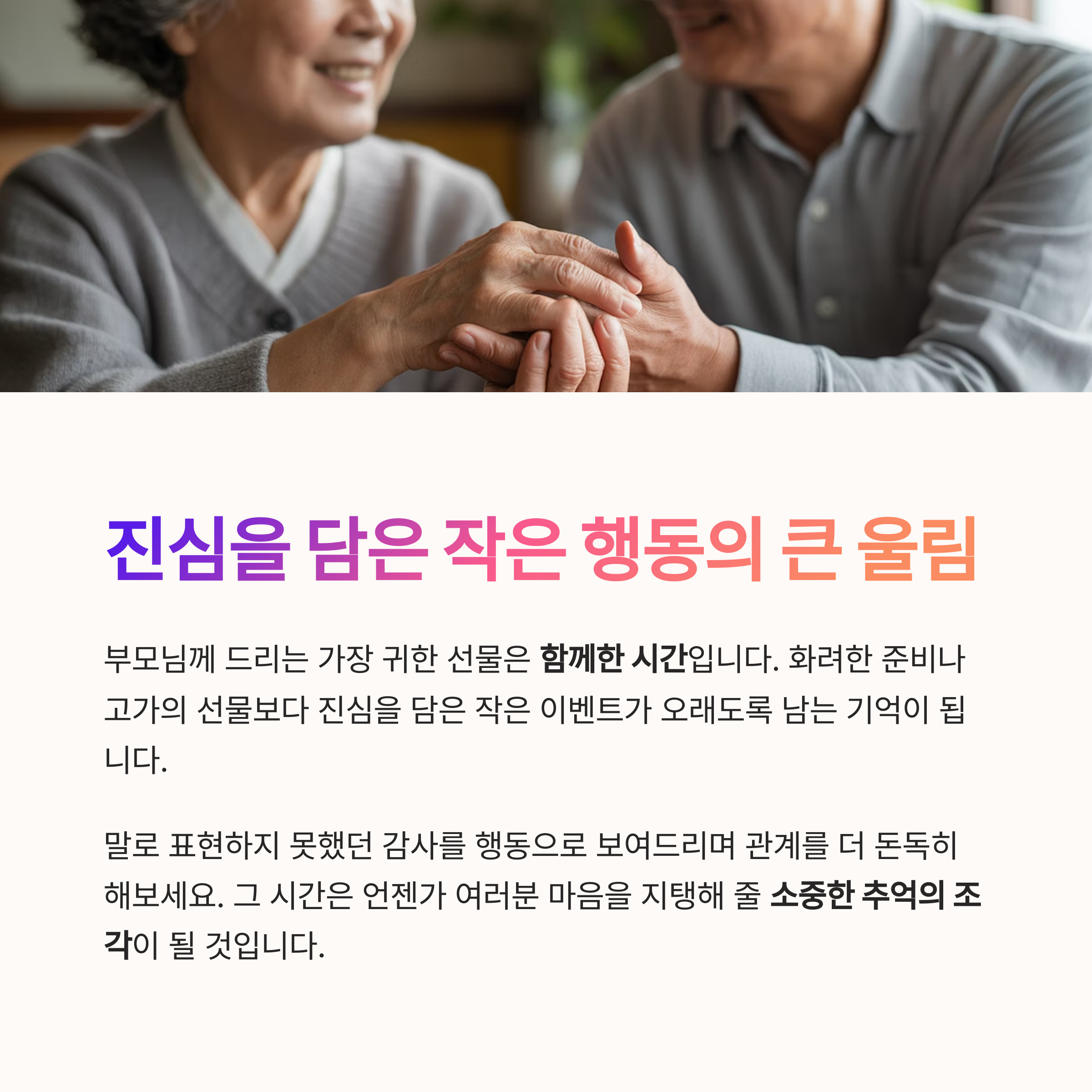 | 이벤트 준비 팁 | 부모님의 취향과 건강 상태를 고려하세요. |