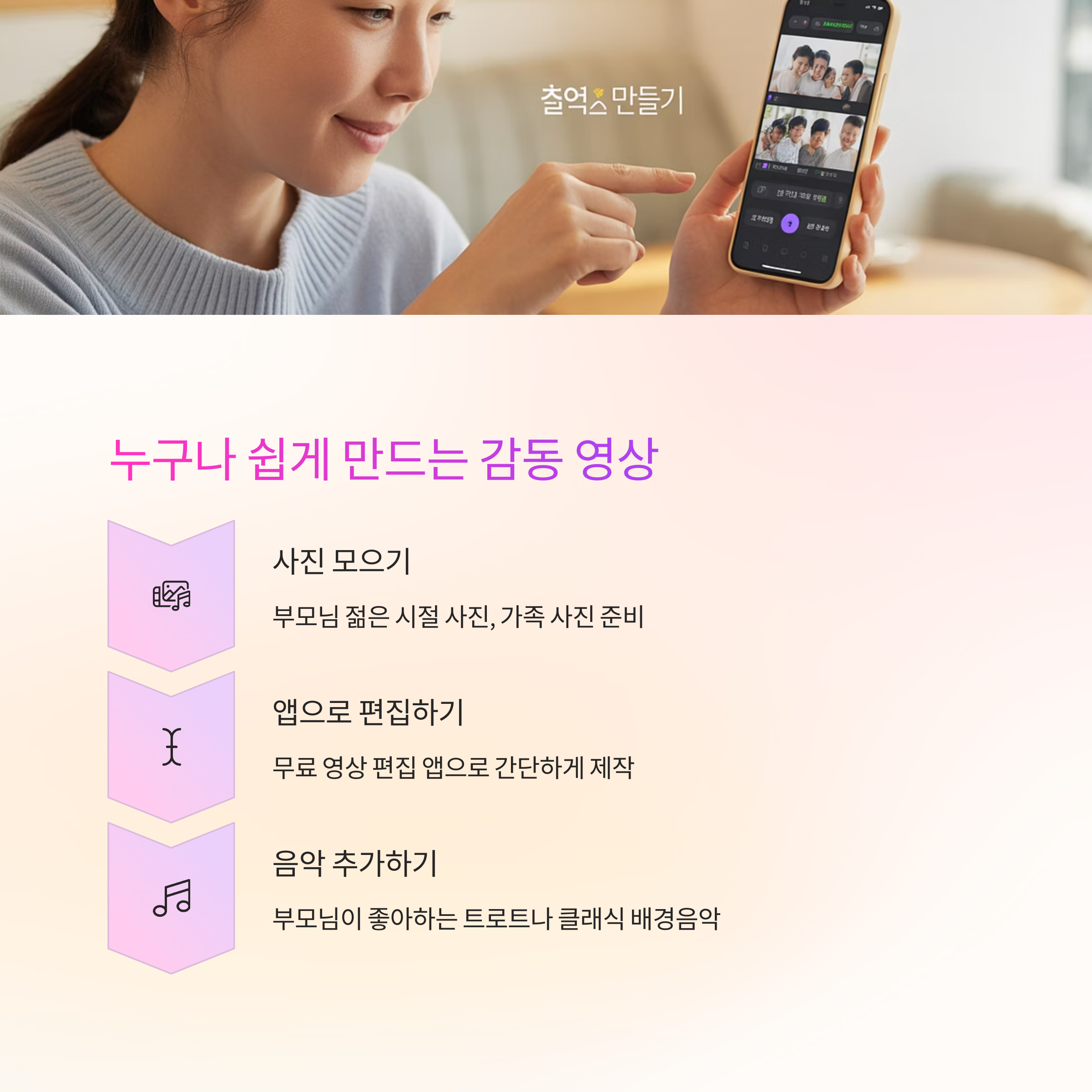 | 손편지, 추억 영상으로 진심 전달 | 초보자도 쉽게 따라할 수 있는 영상편집 | 부모님이 눈물 흘린 최고의 선물 경험담 |