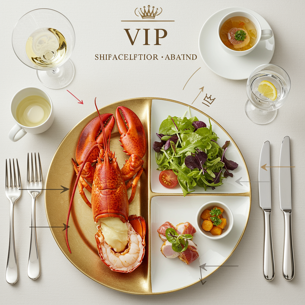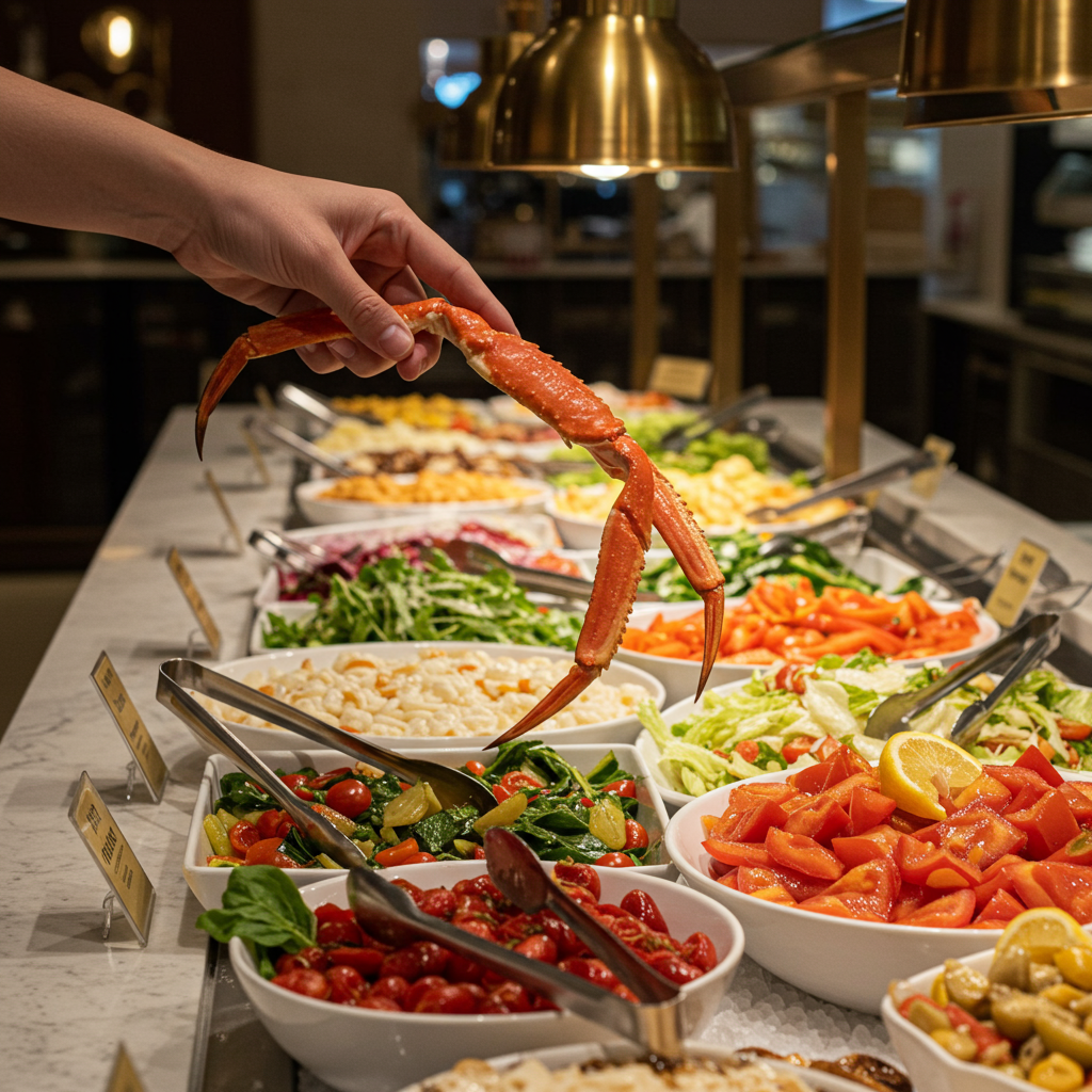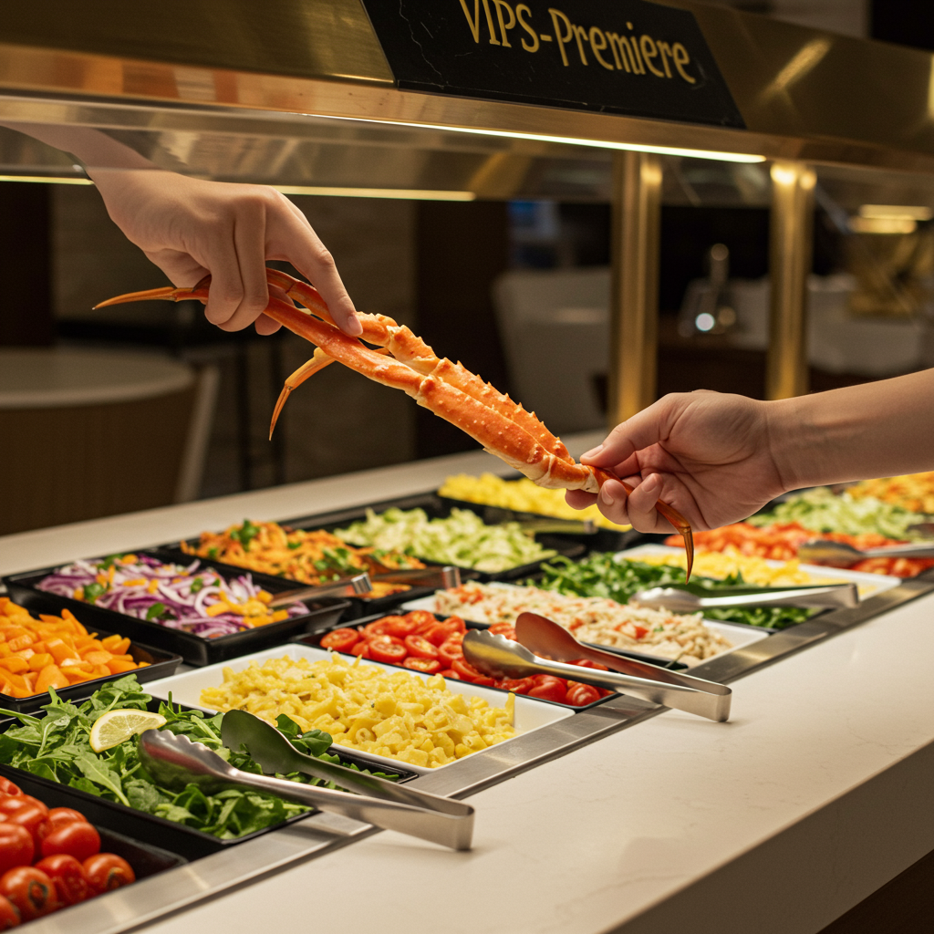- 2. 프리미어 메인 코스: 이제 본전 뽑을 시간! 랍스터와 게, 새우 등 프리미어에서만 제공되는 씨푸드를 집중 공략하세요. 가격대 높은 메뉴들을 먼저 먹는 것이 이득입니다.