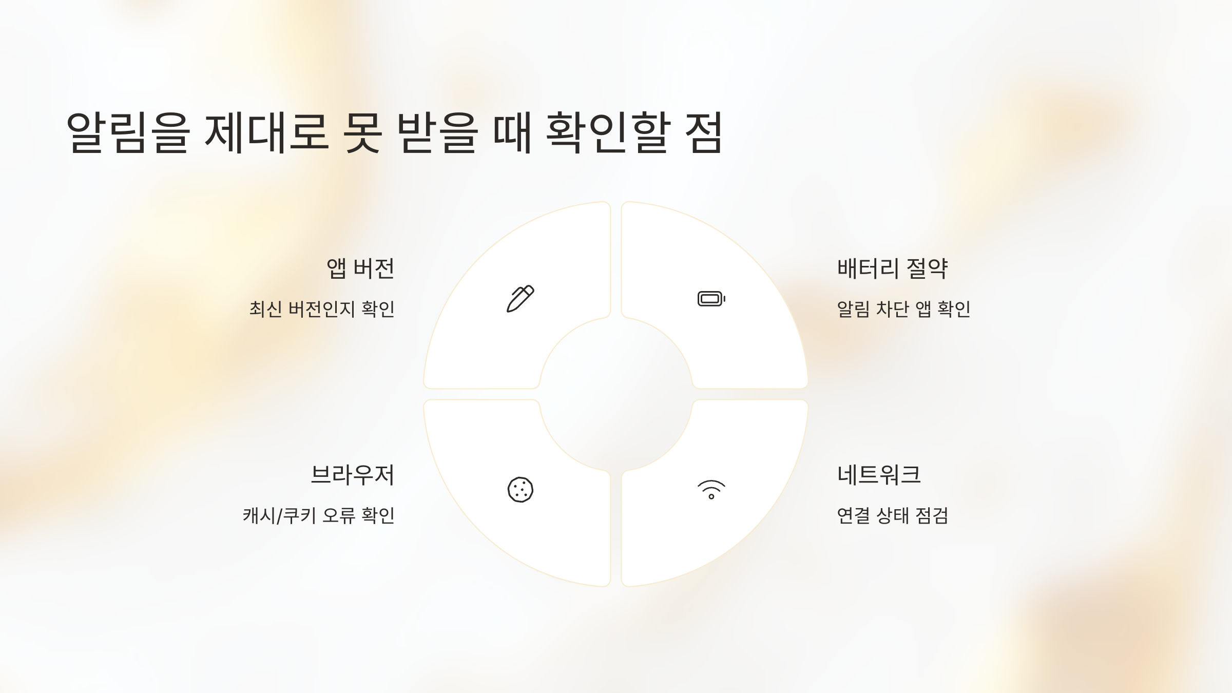 알림을 설정했는데도 못 받는 경우는 다음 항목을 점검해 보세요